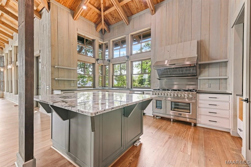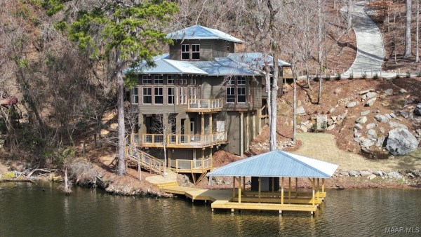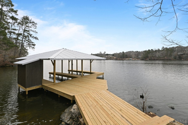 Step outside to an expansive deck with covered and open-air sections, a mini kitchen, and seamless access to your private boathouse, large enough for 2-3 boats, with dedicated storage. Designed for efficiency, the home features EcoFoil insulation, smart home technology (security locks, climate control, surround sound), energy-efficient LED lighting, and a durable metal roof.