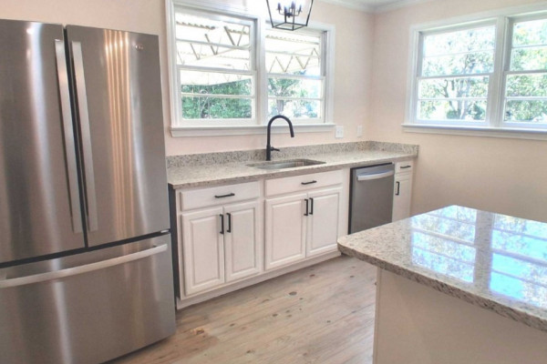 if you love old time charm, and modern conveniences this is your new home. This home features state of the art kitchen with beautiful bar, large farm-style sink, gas stove (18,000 BTU) with modern hood, double door stainless steel refrigerator, and dishwasher. Kitchen also features enclosed coffee bar. So much natural light thru-out. Beautiful new light fixtures thru-out. Two full baths and one-half bath. There is a large bonus room that could be an additional bedroom. This home offers charm of yesteryear with a modern flair. Home is walking distance to high school, town, fire department, police station, library, and restaurants. Back yard looks over pecan orchard (owned by the town) making it a private setting. New roof in 2024, blown in insulation in attic, refinished hardwood floors, and oversized laundry with utility sink. Attic storage. Sit and swing on your covered front porch while enjoying the small-town charm.