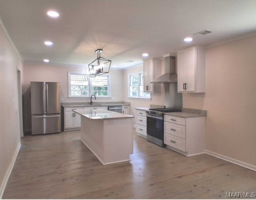 if you love old time charm, and modern conveniences this is your new home. This home features state of the art kitchen with beautiful bar, large farm-style sink, gas stove (18,000 BTU) with modern hood, double door stainless steel refrigerator, and dishwasher. Kitchen also features enclosed coffee bar. So much natural light thru-out. Beautiful new light fixtures thru-out. Two full baths and one-half bath. There is a large bonus room that could be an additional bedroom. This home offers charm of yesteryear with a modern flair. Home is walking distance to high school, town, fire department, police station, library, and restaurants. Back yard looks over pecan orchard (owned by the town) making it a private setting. New roof in 2024, blown in insulation in attic, refinished hardwood floors, and oversized laundry with utility sink. Attic storage. Sit and swing on your covered front porch while enjoying the small-town charm.