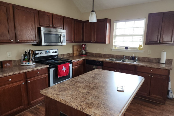 Available December 24, 2025 – This 3 bed 2 bath home features an open floor plan through the living areas and the split floor plan allows for privacy. The primary bedroom is located off the back of the living room and the other two bedrooms and hall bath are off the front of the living room. The kitchen comes with an electric oven, microwave, dishwasher and garbage disposal. The living areas have laminate flooring, the bathrooms are tile and the bedrooms have carpet. There is spray foam insulation for maximum energy savings. The back yard is fully fenced and has a covered patio and storage closet.