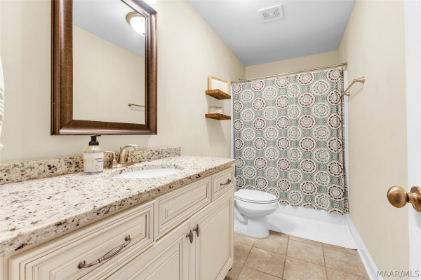 The additional three bedrooms are generously sized and share a full guest bathroom located off the great room.