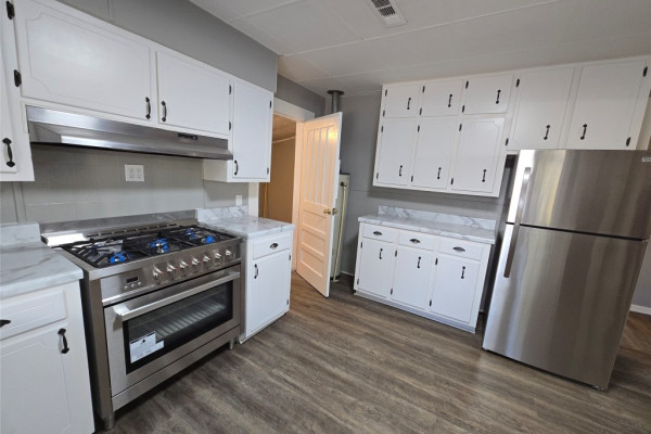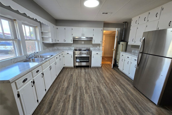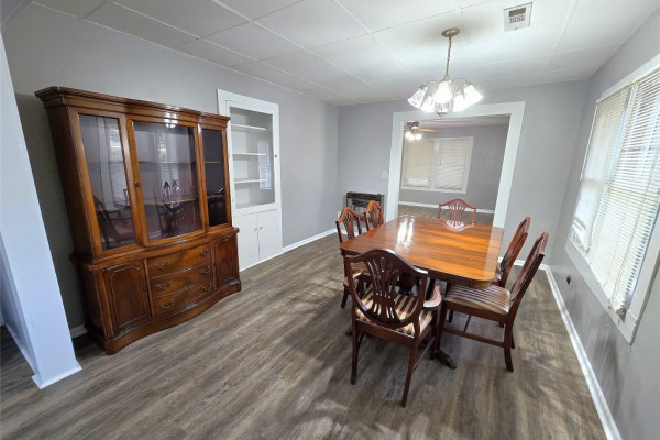 Beautifully updated with new LVP flooring, fresh paint, countertops, appliances, and a completely remodeled bathroom (including new floor joists, subfloor, and plumbing). The living room features a cozy wood-burning fireplace stove that opens to the dining room both with new floor joists, complete with a charming built-in china cabinet. The kitchen flows seamlessly, making this home perfect for entertaining. Outside, enjoy a covered front porch with swing, plus: