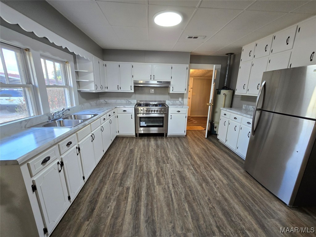 Beautifully updated with new LVP flooring, fresh paint, countertops, appliances, and a completely remodeled bathroom (including new floor joists, subfloor, and plumbing). The living room features a cozy wood-burning fireplace stove that opens to the dining room both with new floor joists, complete with a charming built-in china cabinet. The kitchen flows seamlessly, making this home perfect for entertaining. Outside, enjoy a covered front porch with swing, plus: