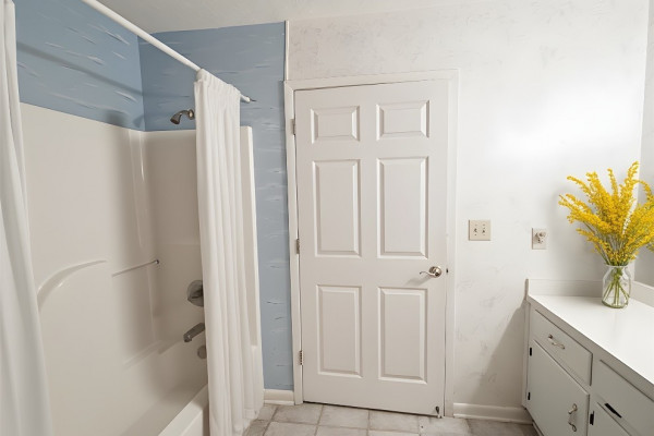 Inside, the home offers a comfortable flow with a large living/dining area, solid-wood cabinetry, and an enclosed sunroom that adds extra flex space for lounging or entertaining. The primary suite includes his-and-hers full bathrooms, two additional bedrooms share a hall bath, and the fourth bedroom enjoys its own private en-suite. Hand-painted artistic accents in each bathroom bring personality and charm to the home. An oversized laundry room with abundant built-in storage adds everyday convenience.