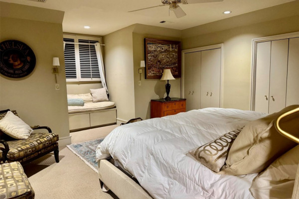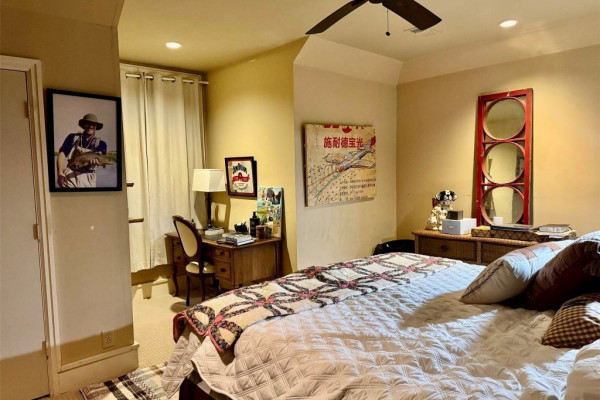 Enjoy floor-to-ceiling custom windows with plantation shutters, two wood-burning fireplaces, spacious his-and-her walk-in closets, and a master bath with travertine, separate vanities, and a large walk-in shower. The kitchen includes slab granite, Thermador stovetop, and KitchenAid appliances.
