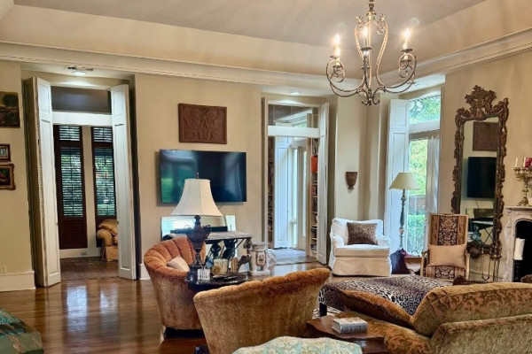 Designed by architect Jim Barganier and winner of the 1987 AIA Design Award, this 3-bed, 2.5-bath home blends classic style with modern comfort. Built in 1985 and updated with a new roof, it features 80+ year-old heart pine floors, a stunning two-story entry with antique marble, and a living room with six sets of French doors and a Louis XVI marble mantle from Paris.