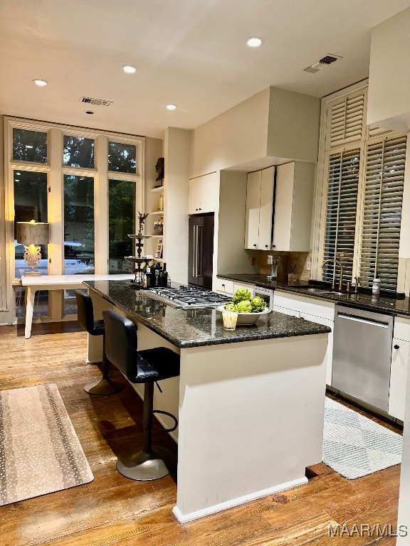 Enjoy floor-to-ceiling custom windows with plantation shutters, two wood-burning fireplaces, spacious his-and-her walk-in closets, and a master bath with travertine, separate vanities, and a large walk-in shower. The kitchen includes slab granite, Thermador stovetop, and KitchenAid appliances.
