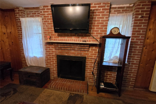 **Separate den with cozy wood-burning fireplace**