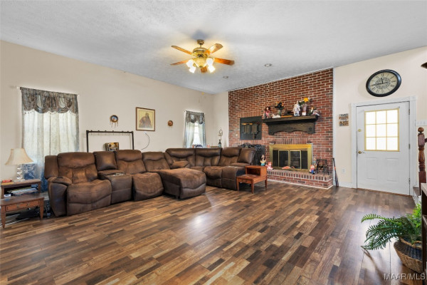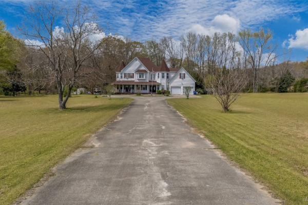 Welcome to the Country! This Beautiful 5 bedroom, 3 1/2 bath home is sitting on 10 acres that features mature pecan trees, pear trees, peach trees and apple trees with a creek that runs through the back of the property, an in-ground pool and wonderful wrap around porch. As you enter through the front door on the first level you will find a foyer, Family room, Large Den that features a gas log fireplace, a wood burning fireplace and a Dutch oven above the fireplaces, a dining room, kitchen, breakfast nook, office/study and a large sunroom along with the downstairs laundry room. Beautiful wood floors, tile and laminate flooring throughout. On the second floor you will find the primary bedroom that includes a sitting room, large bathroom that with a jetted tub, separate shower, double vanities and large walk-in closet. Another full bath, 3 more bedrooms, a study/office and ANOTHER laundry room! On the third floor you will find another large bedroom with a half bath, that could be used as a media room, work out room or use your imagination and use it for whatever your heart desires! Seller is offering $15,000 in Seller concessions towards upgrades, closing costs or whatever buyer chooses. New Upstairs HVAC installed July 2025. Call me to view this Beautiful Home in the Country 334-657-2775.