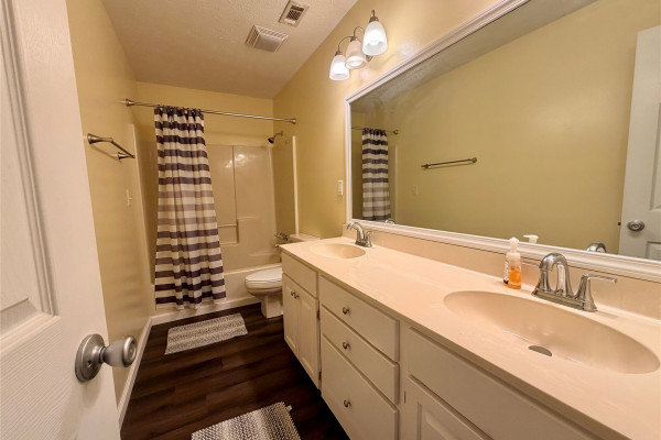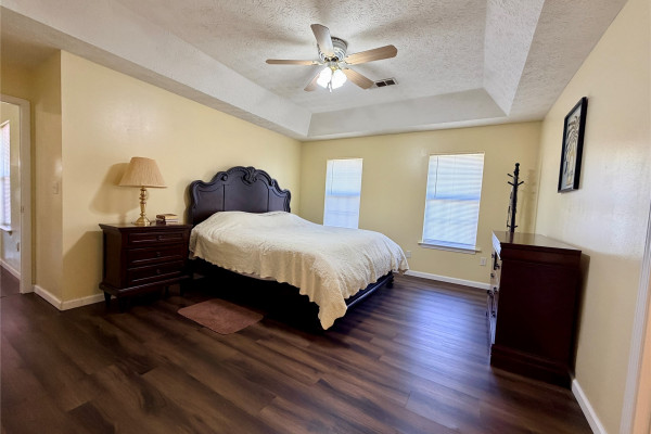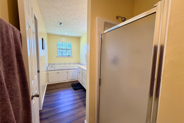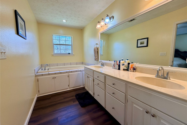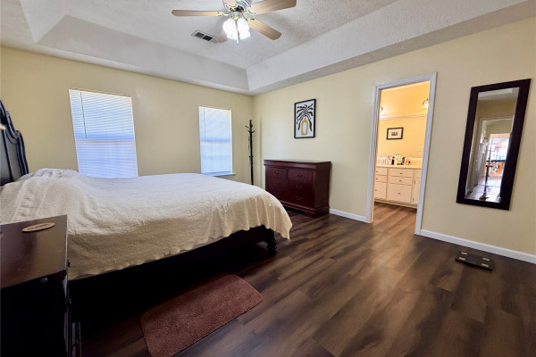 The bedrooms are all extra big. The main bedroom has a wonderful en-suite with a large double vanity, a built-in garden tub, a separate shower, and a huge walk-in closet. New laminate flooring throughout the house offers a fresh, clean look. All appliances, including the washer and dryer, are included with an acceptable offer. This one is a real star!