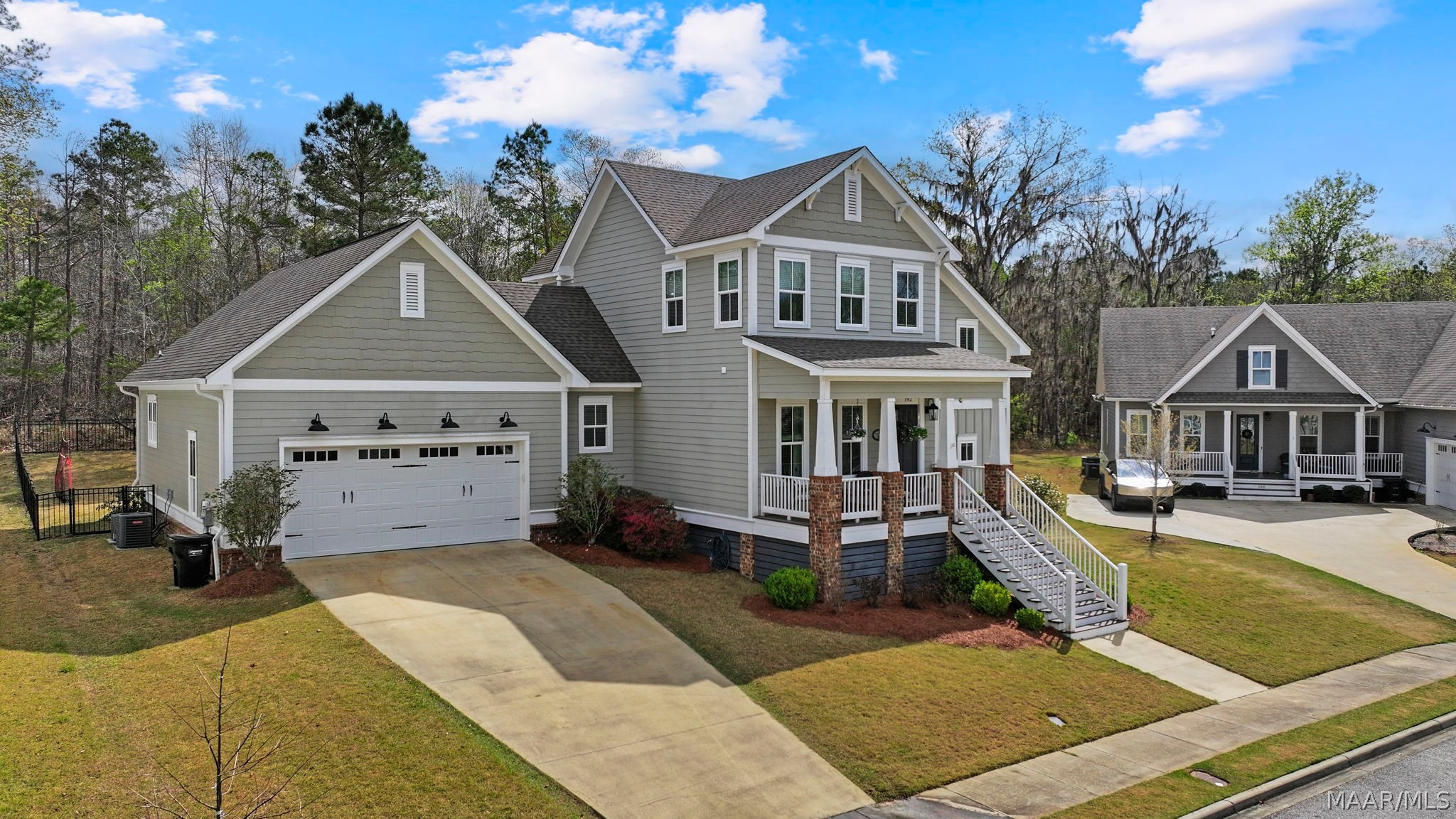 Located in a premier resort-style neighborhood, you’ll enjoy unparalleled amenities and a vacation-like atmosphere every single day. The front of the property is a dream for families; situated just beyond your front yard is a community playground, making it easy to keep an eye on the fun from your porch while enjoying the safety of a no-thru-traffic street. Convenience is key with a spacious 2-car garage providing ample room for vehicles and storage. Inside, the thoughtful layout caters to modern living. The large primary suite is conveniently located on the main floor, offering a private retreat with ease of access. The additional well-appointed bedrooms are situated upstairs, providing a perfect sense of separation and privacy for family or guests. The backyard is a true outdoor oasis that backs directly up to lush woods for ultimate privacy. Relax in the screened-in porch, perfect for enjoying the breeze without the bugs, or step out onto the elegant stone patio for grilling and entertaining. For those with a green thumb, the yard features raised garden beds ready for your favorite herbs or flowers, all set against a serene, wooded backdrop. Whether you’re looking for a neighborhood filled with activity or a quiet retreat to call your own, this home offers the best of both worlds. Don’t miss your chance to live where you play!