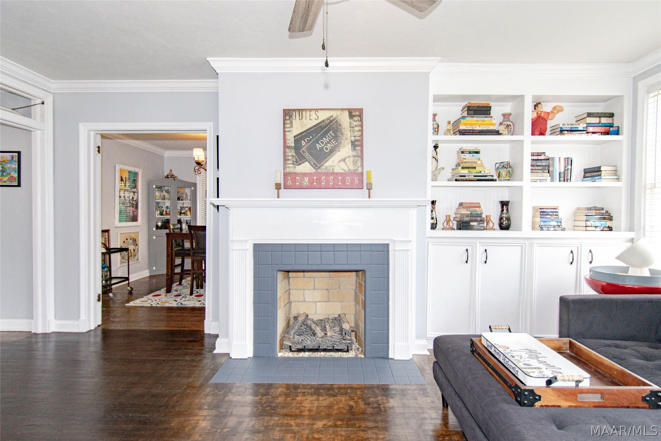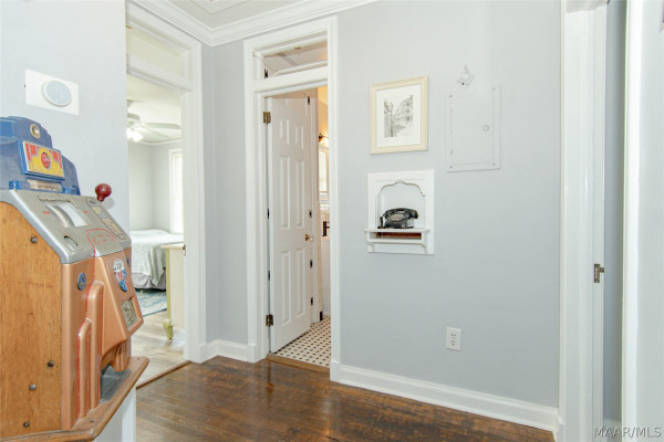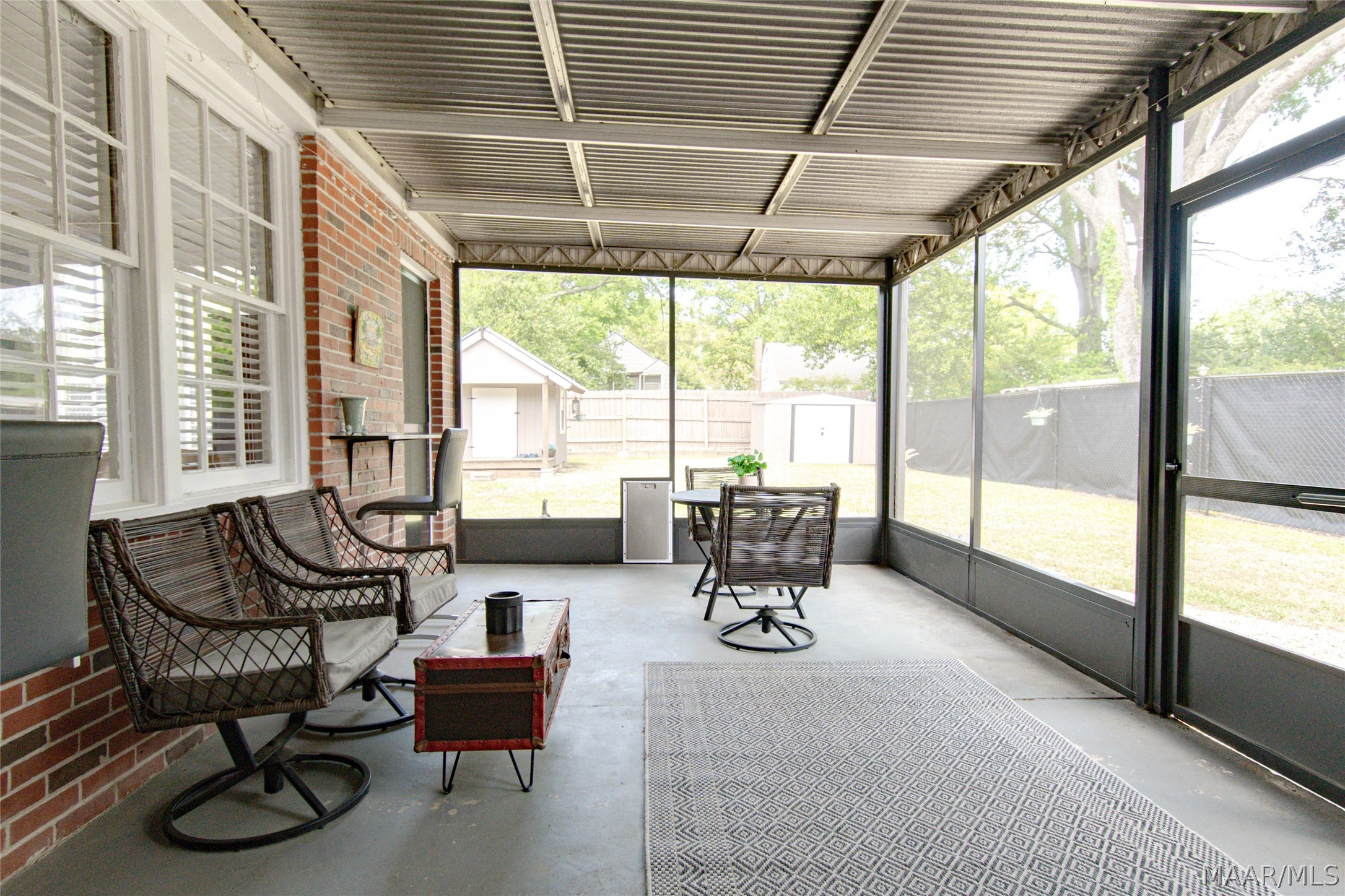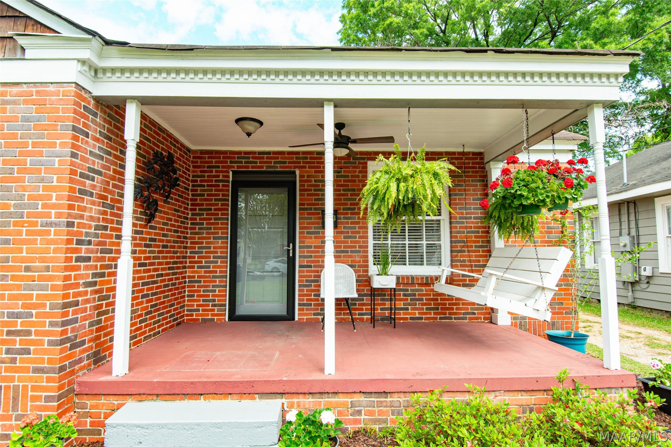 Welcome to this beautifully maintained classic home, where charm meets modern comfort. Featuring rich hardwood floors throughout and elegant colonial-style 4-inch baseboards paired with crown molding, every detail adds warmth and character. Enjoy cozy evenings by the working gas fireplace with new gas logs, or relax on the spacious front porch complete with a charming swing—perfect for morning coffee or evening unwinding. Inside, natural light pours through an impressive 19 windows, all recently painted and glazed, creating a bright and inviting atmosphere throughout the home. The updated HVAC system (2023) with a Google Nest thermostat ensures year-round comfort. Ceiling fans are installed in all three bedrooms, the living room, and even the front porch for added efficiency and comfort. The home offers exceptional functionality with built-in bookshelves and cabinetry, plus a versatile back bedroom featuring a walk-in closet, private half bath, and its own separate entrance opening onto the screened-in patio—ideal for guests or a home office. An additional kitchen entrance adds convenience and flow. The main bathroom is designed for relaxation, offering both a separate shower stall and a tub/shower combo. The dining room opens beautifully through French doors, enhancing both natural light and indoor-outdoor connectivity. Two-inch wood blinds are installed throughout for a polished finish. Step outside to enjoy a fully fenced backyard with a 6-foot black chain-link privacy fence, a firepit for gatherings, and two storage sheds for all your needs. All appliances including washer and dryer are included. With a storm door at the front entrance, and a layout that blends comfort, charm, and versatility, this home is truly move-in ready and perfect for modern living.