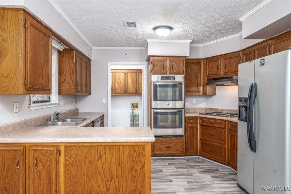 Stately 4 bedroom, 2 ½ bath home with great living space in desirable Bell Meadows neighborhood close to shopping, schools, and restaurants! The kitchen is equipped with a double oven, cooktop, breakfast bar and the refrigerator remains. Laundry room is conveniently located right off the kitchen area. You will also find additional dining accommodations for family and friends in the formal dining room adjacent to the kitchen. There is also a half bath located under the stairway that is perfect for guests while entertaining. The large great room has a real woodburning fireplace for the upcoming fall nights with built in bookshelves. Master bedroom is spacious with new carpet, with a walk-in closet. The master bath has dual sinks, a soaking tub and a separate shower. Upstairs are two guest bedrooms with fresh paint and carpet along with a Jack-n-Jill bath. Out back enjoy the covered patio, perfect for entertaining or great for relaxing to sit back and enjoy the day. You will also find a double covered carport with attached storage that runs the full length of the carport. This home is roomy and ready for new owner! Recent upgrades on the interior are new laminate flooring, carpet in bedrooms, new painted stairway, exterior wood root fixed as well as a renovated front door. Please show and sell!