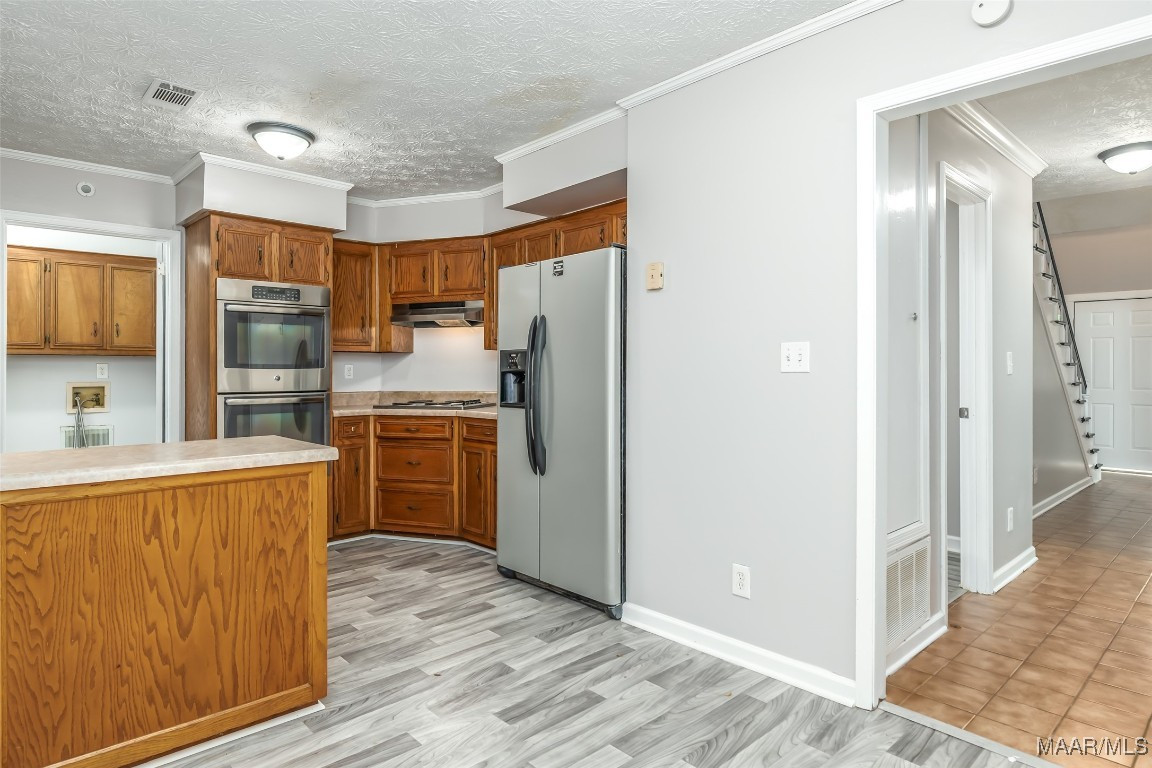 Stately 4 bedroom, 2 ½ bath home with great living space in desirable Bell Meadows neighborhood close to shopping, schools, and restaurants! The kitchen is equipped with a double oven, cooktop, breakfast bar and the refrigerator remains. Laundry room is conveniently located right off the kitchen area. You will also find additional dining accommodations for family and friends in the formal dining room adjacent to the kitchen. There is also a half bath located under the stairway that is perfect for guests while entertaining. The large great room has a real woodburning fireplace for the upcoming fall nights with built in bookshelves. Master bedroom is spacious with new carpet, with a walk-in closet. The master bath has dual sinks, a soaking tub and a separate shower. Upstairs are two guest bedrooms with fresh paint and carpet along with a Jack-n-Jill bath. Out back enjoy the covered patio, perfect for entertaining or great for relaxing to sit back and enjoy the day. You will also find a double covered carport with attached storage that runs the full length of the carport. This home is roomy and ready for new owner! Recent upgrades on the interior are new laminate flooring, carpet in bedrooms, new painted stairway, exterior wood root fixed as well as a renovated front door. Please show and sell!