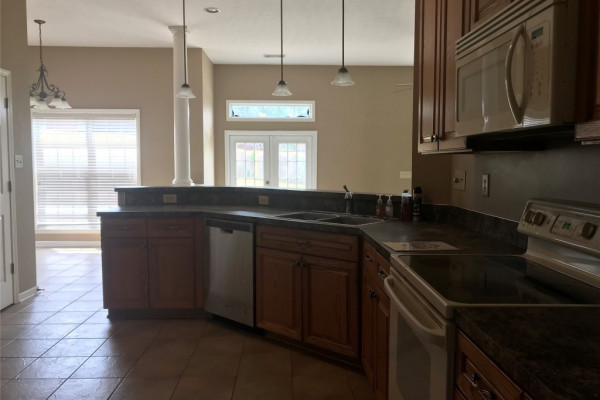 Currently occupied with a lease through June 30, 2026, available for lease starting July 1, 2026. Contact property manager for application requirements and showing process. Wonderful 4-bedroom, 2-bath house with 2 large living areas, and open floor plan in Highland Ridge! The home has a living room, family room, dining room, a well laid out kitchen with a dining area and a utility room. Flooring updated in 2020 to LVP in the main living areas and carpet in the bedrooms. Features include high ceilings, fireplace, refrigerator, dishwasher, disposal, stove,