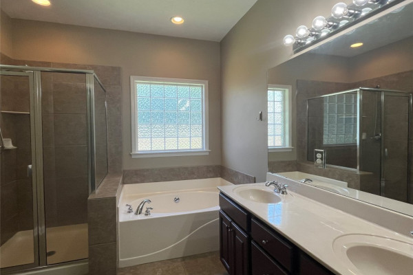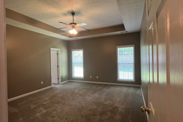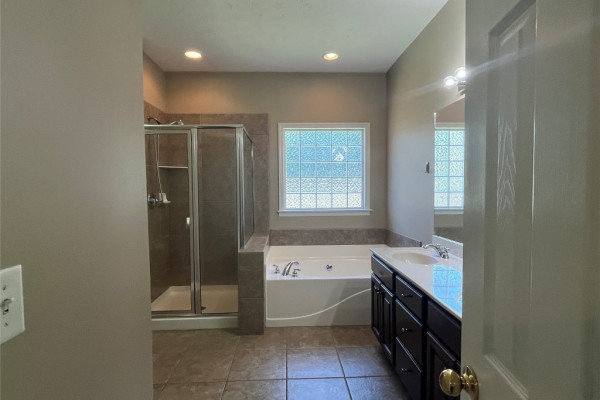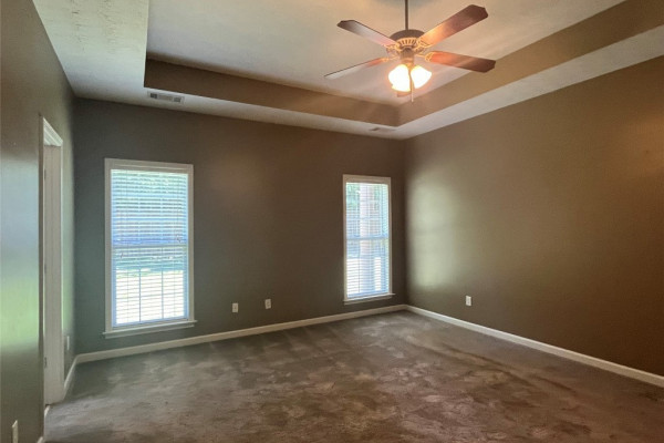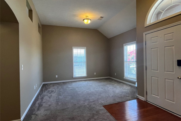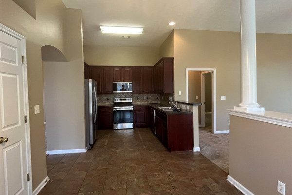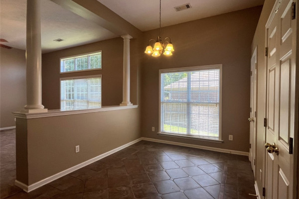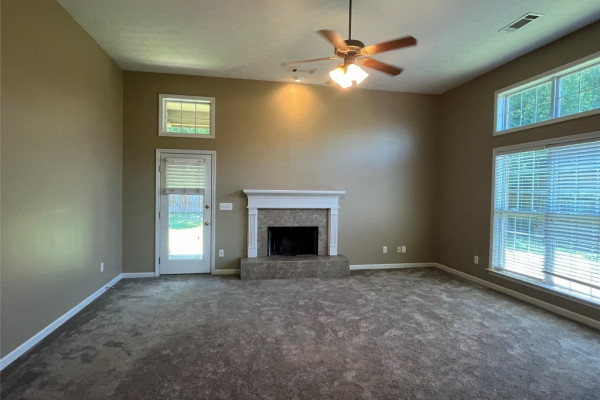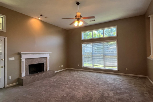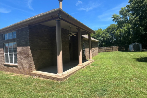 CURRENTLY OCCUPIED with a lease through June 30, 2026, available for lease starting July 1, 2026. This 4 bedroom, 2 bath has a lot of extras… custom tile backsplash and floor in the kitchen, two living spaces plus a formal dining area. Covered backyard patio with one of the largest fenced backyards in the neighborhood…adjoins a multi-acre wooded area. Master bath with tempered glass shower, double sinks both bathrooms, master suite with two large walk-in closets. More storage than most… floored storage above the garage (600+ sq feet), storage room off garage (100 sq feet), plus backyard storage shed (big enough for lawn equipment plus bikes). This neighborhood includes sidewalks, and a community pool.