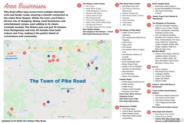 Come Make a Life of It at The Waters in Pike Road, AL! Enjoy resort-style living with world-class fishing, multiple lakes, swimming pools, tennis and pickleball courts, a lakeside beach, dog park, town square, fire pit, soccer field, Playborhood Hill, bocce ball, green space, pavilions, a sport court, gaga pit, kayaking, canoeing, playgrounds, parks, and the Trail to Education leading to the Pike Road Elementary school. Shop and dine at our Town Center businesses or take a short drive to Pike Road Shopping, Eastchase, and Chantilly. Just 2.5 miles off I-85, Exit 16, and zoned for Pike Road Schools (K4-12th grade). Make your dream vacation your everyday life! Seller reserves the right to approve buyer’s mortgage lender.