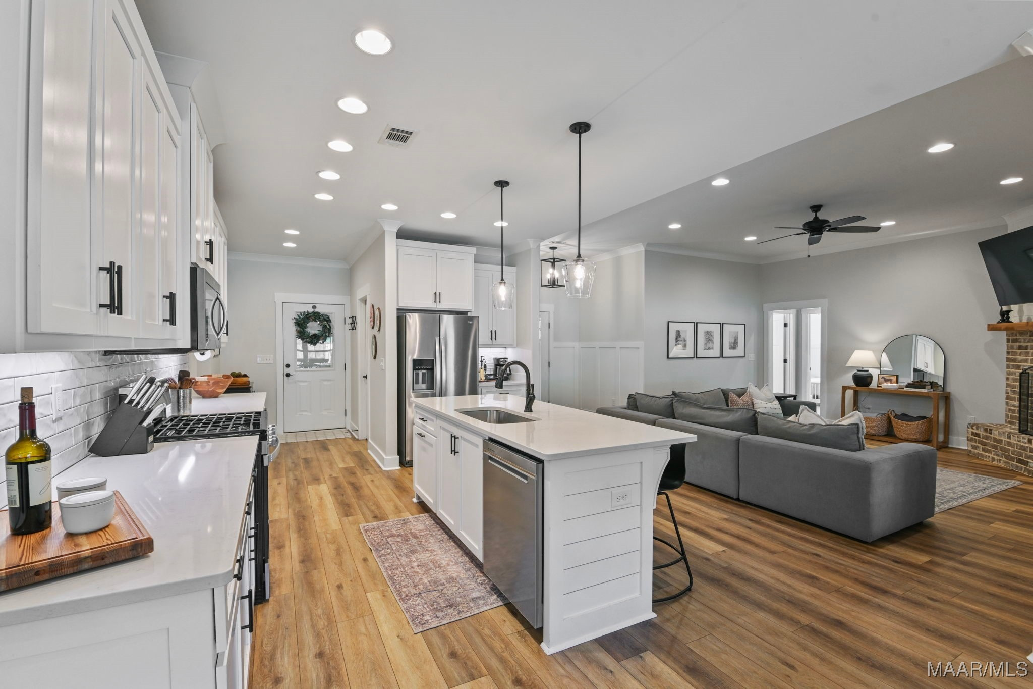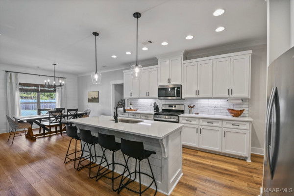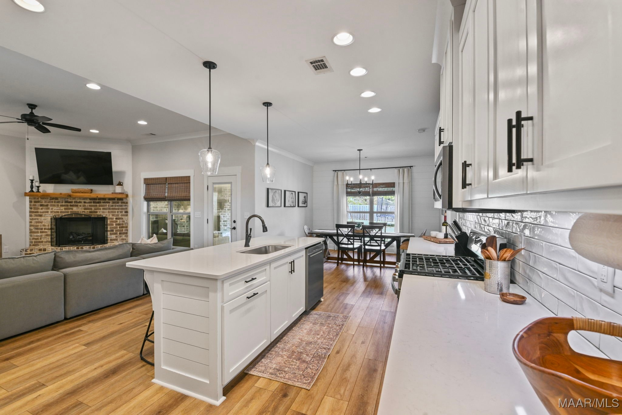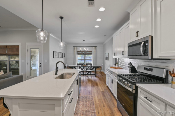 The main living area flows beautifully into the kitchen and dining space, making it easy to host family and friends while still staying connected to the heart of the home. With generous counter space, ample cabinetry, and a layout that works for busy mornings and cozy evenings, the kitchen is ready for everything from quick weeknight dinners to weekend hosting.