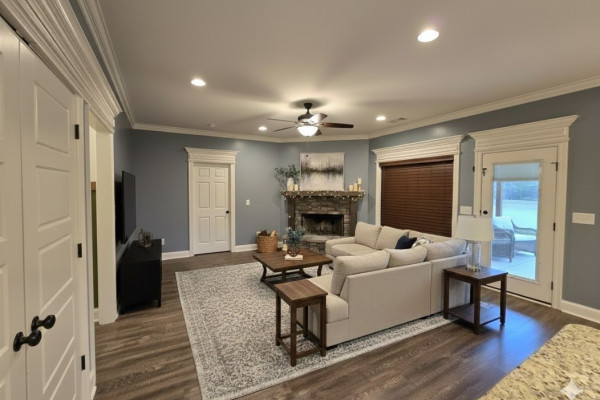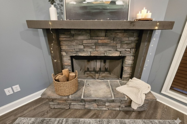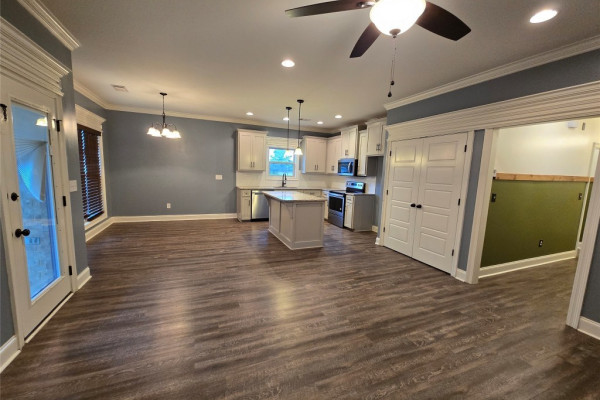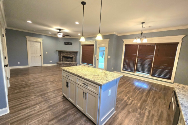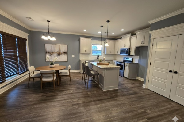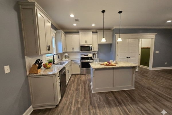Built in 2018, this beautiful home offers modern finishes, an open layout, and a spacious .52-acre lot with mature trees. Luxury vinyl plank floors run through the main living areas, with carpet in the bedrooms for comfort. The kitchen features granite countertops, a work island with storage, a breakfast bar, and a breakfast nook or small dining area that opens directly to the living room—perfect for entertaining. Don’t miss the stunning stone wood-burning fireplace as the centerpiece of the living space.