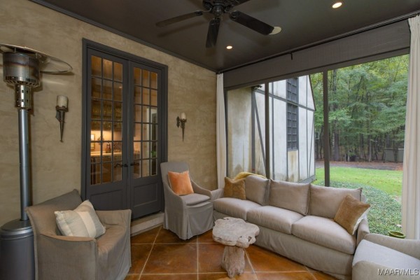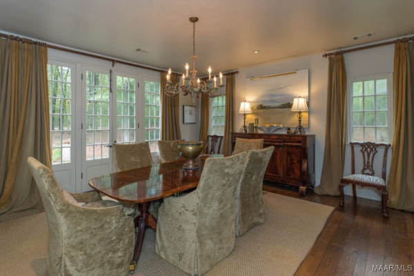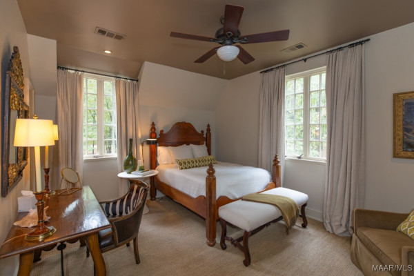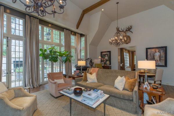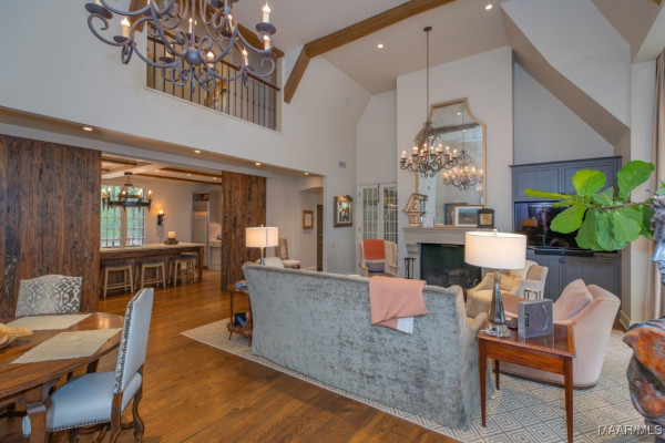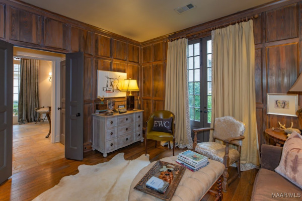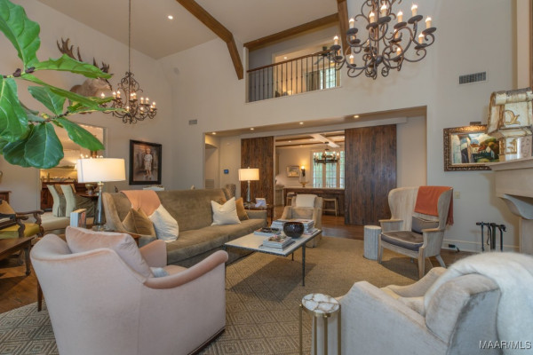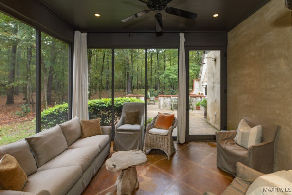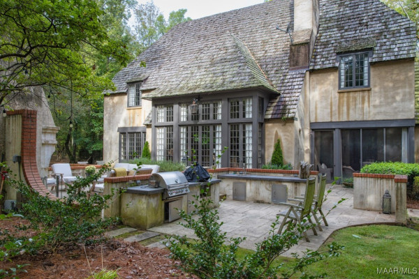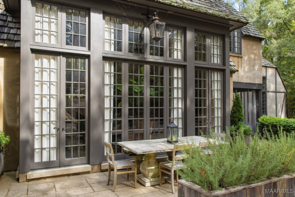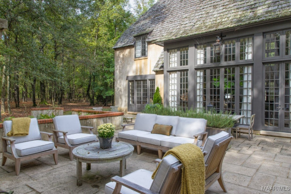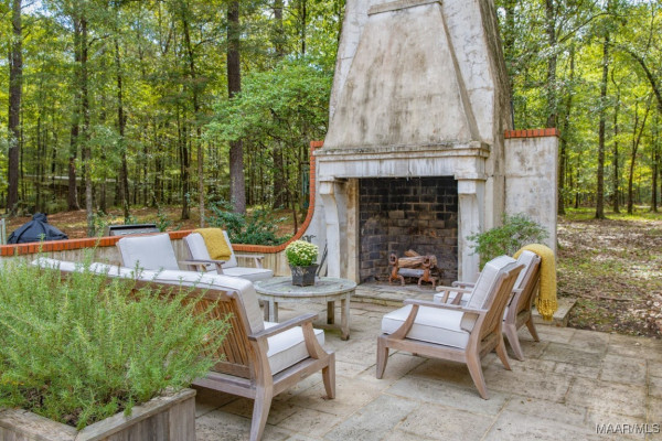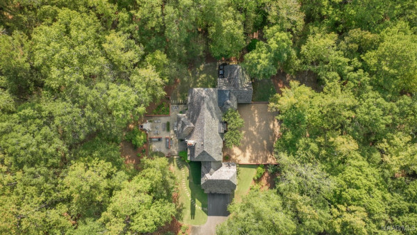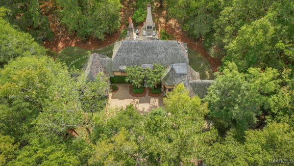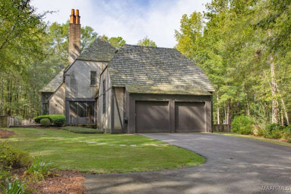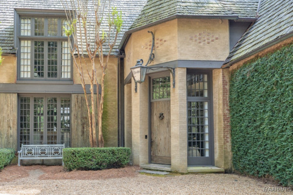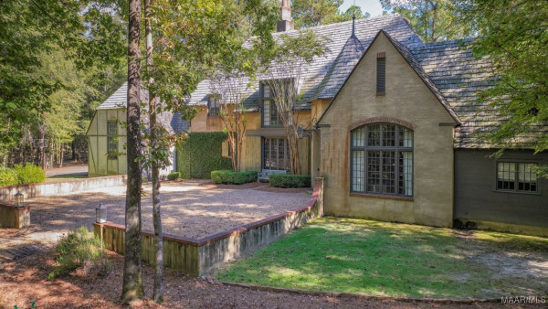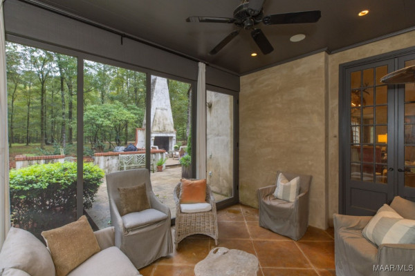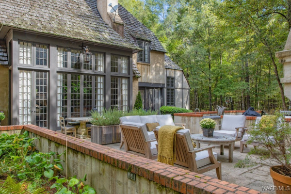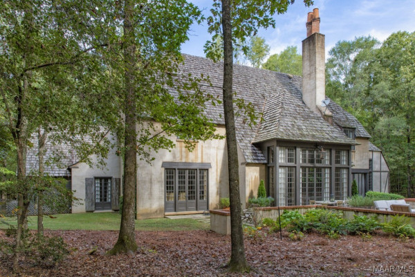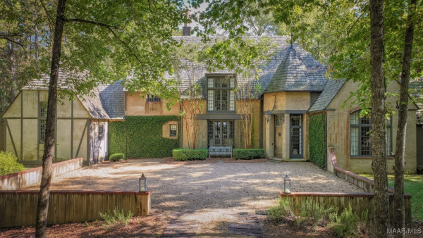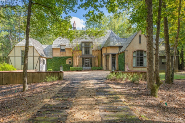 One of a kind English country home designed by award winning architect Bill Ingram. Nestled on the edge of 14 acres, this magical light filled residence features professionally designed interiors with exquisite materials and finishes – white oak floors, cypress paneling, limestone fireplaces, incredible molding, towering beams, and custom doors and windows throughout. Idyllic approach to the front of the home as trees give way to a large motor court and the many fine details of this inspiring property. Warm 2 story entrance foyer has tall floor to ceiling windows. Adjacent primary bedroom suite provides privacy and consists of a lovely cypress paneled study with fireplace, bedroom with 12 ft. ceiling, spa like bath and deep walk in closet. Wonderful dining room flows into vaulted den with wood burning fireplace, wood beams, wall of windows and doors leading to rear patio. Luxurious kitchen can be open or closed to den with large cypress sliding doors – custom island and cabinetry, wood beams, high end stainless appliances, and deep walk in pantry. Fully equipped wet bar is well positioned near screened in porch. Spacious laundry and nearby office. Exquisite powder room just off foyer is hidden among custom cypress closets. Extra wide, sunlit stone staircase leads to carefully designed second level. Awesome hobby room/office at top of stairs connects to floored attic space. Guest bedroom 1 provides a nice en suite bath. Lovely den features cantilevered built in and natural light. Two more spacious bedrooms with built ins share a well appointed hallway bath. Large walk in closet doubles as sleeping nook. Massive fully floored attic provides abundant storage. Wonderful outdoor space for entertaining boasting an expansive rear patio with wood burning fireplace and kitchen. Large metal barn with 3 bays, and 2 car garage with storage. Incredible privacy with nearest neighbor a mile way but close to Publix(1.7 miles). Details on additional acreage available upon request.