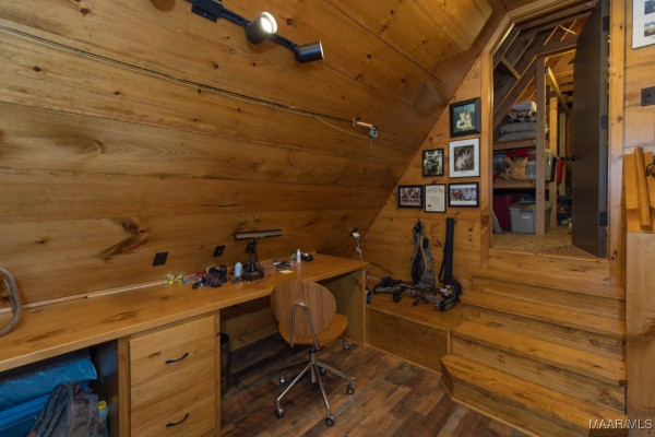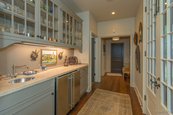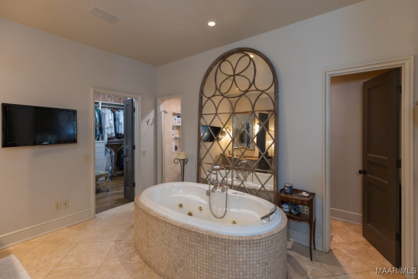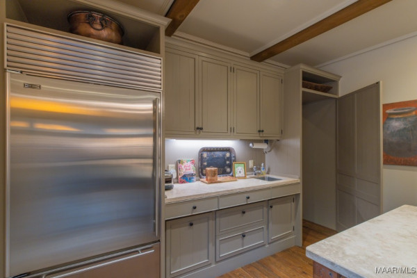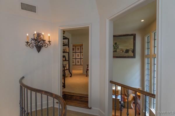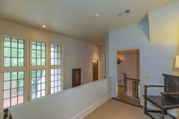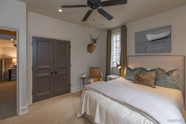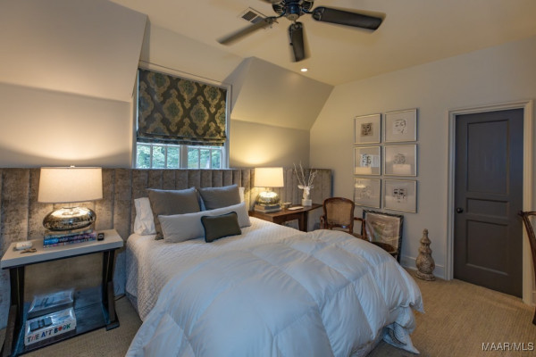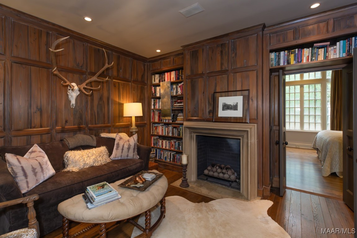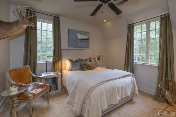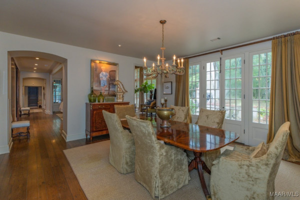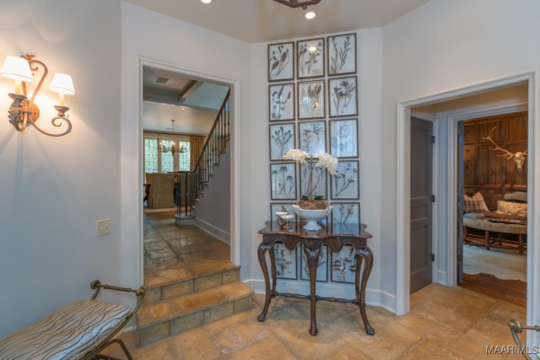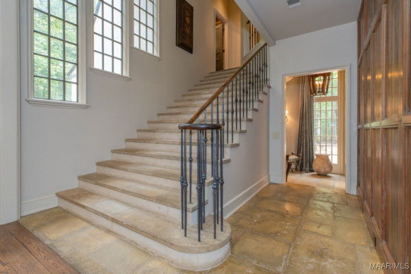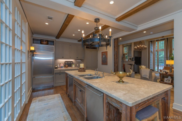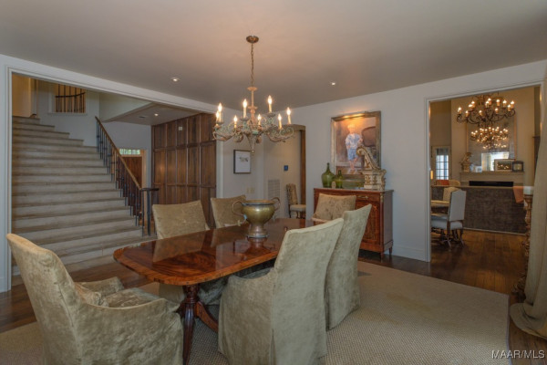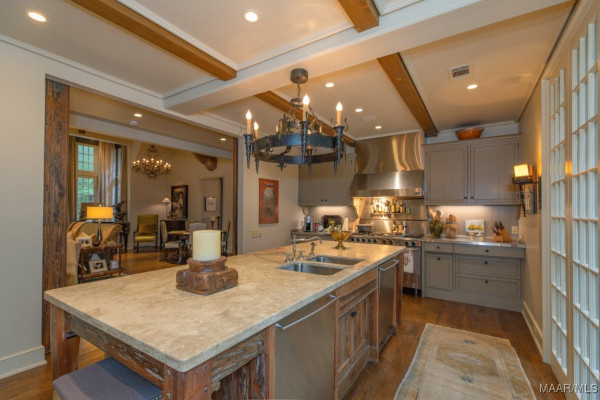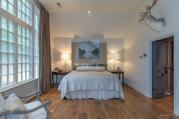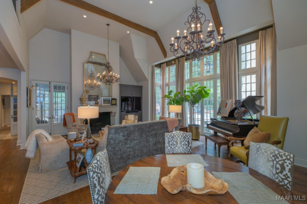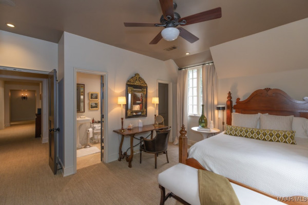 One of a kind English country home designed by award winning architect Bill Ingram. Nestled on the edge of 14 acres, this magical light filled residence features professionally designed interiors with exquisite materials and finishes – white oak floors, cypress paneling, limestone fireplaces, incredible molding, towering beams, and custom doors and windows throughout. Idyllic approach to the front of the home as trees give way to a large motor court and the many fine details of this inspiring property. Warm 2 story entrance foyer has tall floor to ceiling windows. Adjacent primary bedroom suite provides privacy and consists of a lovely cypress paneled study with fireplace, bedroom with 12 ft. ceiling, spa like bath and deep walk in closet. Wonderful dining room flows into vaulted den with wood burning fireplace, wood beams, wall of windows and doors leading to rear patio. Luxurious kitchen can be open or closed to den with large cypress sliding doors – custom island and cabinetry, wood beams, high end stainless appliances, and deep walk in pantry. Fully equipped wet bar is well positioned near screened in porch. Spacious laundry and nearby office. Exquisite powder room just off foyer is hidden among custom cypress closets. Extra wide, sunlit stone staircase leads to carefully designed second level. Awesome hobby room/office at top of stairs connects to floored attic space. Guest bedroom 1 provides a nice en suite bath. Lovely den features cantilevered built in and natural light. Two more spacious bedrooms with built ins share a well appointed hallway bath. Large walk in closet doubles as sleeping nook. Massive fully floored attic provides abundant storage. Wonderful outdoor space for entertaining boasting an expansive rear patio with wood burning fireplace and kitchen. Large metal barn with 3 bays, and 2 car garage with storage. Incredible privacy with nearest neighbor a mile way but close to Publix(1.7 miles). Details on additional acreage available upon request.