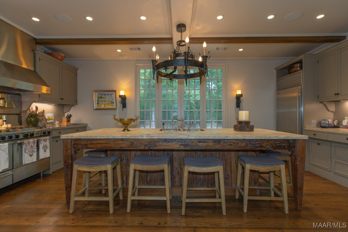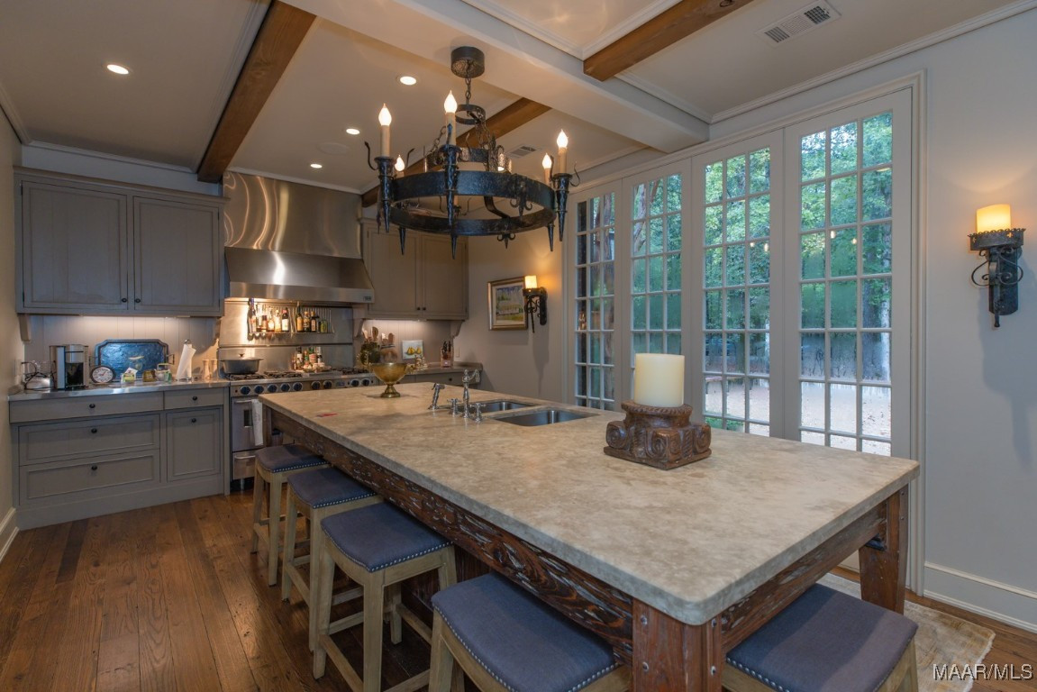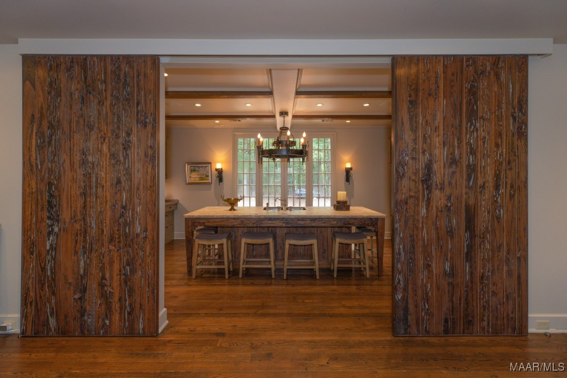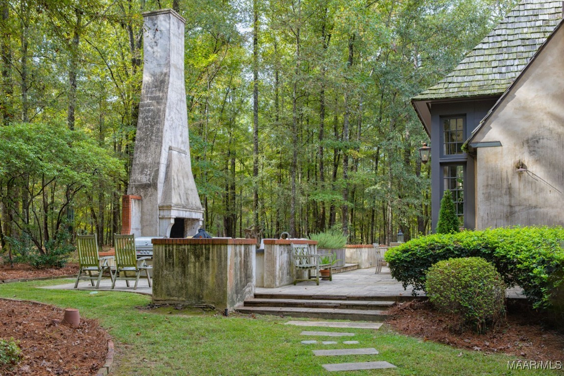 One of a kind French Normandy style home designed by award winning architect Bill Ingram. Nestled on the edge of 100 acres, this magical light filled residence features professionally designed interiors with exquisite materials and finishes – white oak floors, cypress paneling, limestone fireplaces, incredible molding, towering beams, and custom doors and windows throughout. Idyllic approach to the front of the home as mature hardwoods give way to a large motor court and the many fine details of this inspiring property. Warm 2 story entrance foyer has tall floor to ceiling windows. Adjacent primary bedroom suite provides privacy and consists of a lovely cypress paneled study with fireplace, bedroom with 12 ft. ceiling, spa like bath and deep walk in closet. Wonderful dining room flows into vaulted den with wood burning fireplace, wood beams, wall of windows and doors leading to rear patio. Luxurious kitchen can be open or closed to den with large cypress sliding doors – custom island and cabinetry, wood beams, high end stainless appliances, and deep walk in pantry. Fully equipped wet bar is well positioned near screened in porch. Extra wide, sunlit stone staircase leads to carefully designed second level. Awesome hobby room/office at top of stairs connects to floored attic space. Guest bedroom 1 provides a nice en suite bath. Lovely den features cantilevered built in and natural light. Two more spacious bedrooms with built ins share a well appointed hallway bath. Large walk in closet doubles as sleeping nook. Massive fully floored attic provides abundant storage. Wonderful outdoor space for entertaining boasting an expansive rear patio with wood burning fireplace and kitchen. Large metal barn with 3 bays, and 2 car garage with storage. A legacy property that sits adjacent to historic Ft. Toulouse and joins a multi thousand acre neighbor with end of the road privacy. Forever Wild mirror image property across the road. Excellent deer and turkey hunting. A must see!