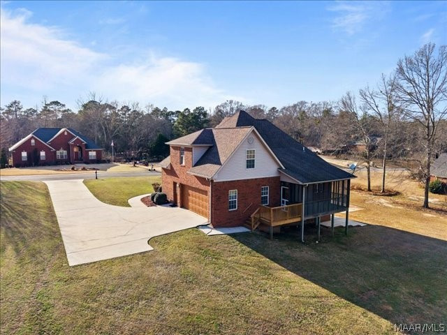 Welcome to 20 Deer Trace in Clanton, Alabama — a beautifully custom-built home (2003) offering three full levels of living space in a highly desirable neighborhood just minutes from Clanton High School and with convenient access to Interstate 65 for easy travel to Montgomery or Birmingham. Situated on approximately .66 acre +/-, this spacious residence is ideal for a large or multi-generational family, featuring cathedral ceilings and bright neutral paint tones that enhance the open feel of the main-level living room and private master suite. The foyer and formal dining room showcase beautiful hardwood flooring, while the fully equipped kitchen offers stainless steel appliances, custom cabinetry, pantry storage, an eat-in area, and a full laundry room complete with washer and dryer. Upstairs, you will find three additional bedrooms, a shared full bath, and walk-in attic storage with extra closet space. The finished lower level provides even more versatility with a large den or family room, a full bedroom and bathroom, and a mini kitchen complete with sink, dishwasher, microwave, and cabinetry — perfect for extended family or guests. Additional highlights include a workshop, an under-home storm safe area for peace of mind, two separate driveways, two garages, abundant parking, and a generous lot that offers both privacy and room to enjoy outdoor living — making this exceptional property a rare opportunity in the heart of Clanton.
