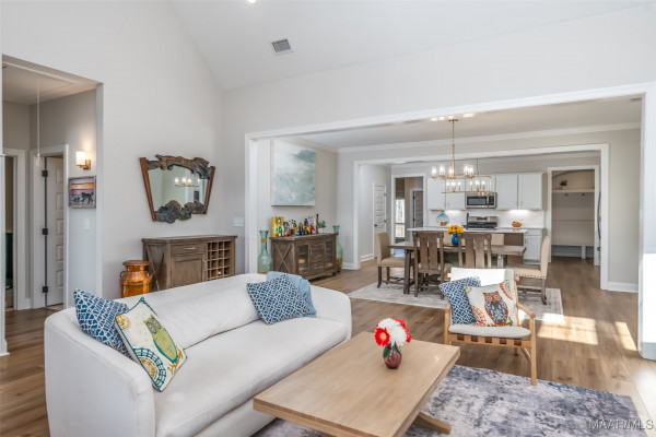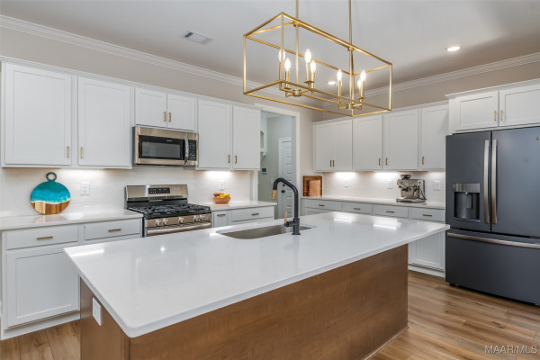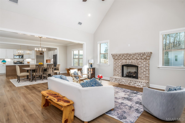 Call TODAY to see this Pike Road beauty! This gorgeous one-owner single-level home features 4 Bedrooms, 3 Baths, & an open, welcoming layout. It sits on an oversized cul-de-sac lot with an underground sprinkler system & a fully fenced backyard. As you pull in the extended driveway, you’ll notice the lovely flower beds & large front porch, perfect for rocking chairs or a porch swing. Entering the home, the Great Room will catch your attention with its vaulted ceiling, upgraded Memphis-style gas fireplace, durable upgraded LVP floors, coat hooks/upgraded wall styling, & an abundance of windows for natural light. The Great Room opens to the spacious Dining area & Kitchen, making family time & entertaining so easy. The Kitchen features an oversized work island with room for extra seating, & the huge walk-in pantry is such a plus! The family cook will love the abundance of counter space & “soft-close” cabinets, gas range with a built-in microwave above, deep stainless sink, & under-mount cabinet lighting. The Main Bedroom has a private en-suite Bath complete with 2 separate vanities, a walk-in tiled shower, a separate garden tub & a huge walk-in closet. All of the spare Bedrooms also have walk-in closets & Bedroom 4 has a private Bath. High Energy standards with Smart Home Features include Low-E Windows, a Tankless gas water heater, Architectural Shingles & Gutters. Entering from the 2-car Garage, you’ll find a convenient “drop-zone” with a built-in bench & coat storage. Don’t forget the large screened-in patio. This is the ideal spot to enjoy your morning coffee or relax in the evenings. As an added bonus, the home backs up to a heavily wooded area & a small pond for a completely private backyard view. In addition to rear patio pavers & rear flower beds, the sellers added a metal fence along the rear to preserve the natural views. Come take a look, and you’ll fall in love with this outstanding home! Penn Meadows offers a pool/pavilion & is less than a mile to Publix.