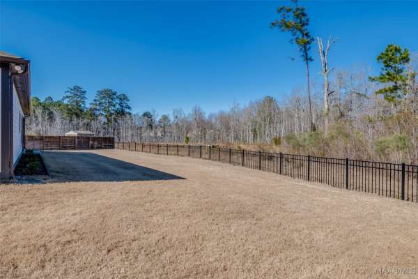 Call TODAY to see this Pike Road beauty! This gorgeous one-owner single-level home features 4 Bedrooms, 3 Baths, & an open, welcoming layout. It sits on an oversized cul-de-sac lot with an underground sprinkler system & a fully fenced backyard. As you pull in the extended driveway, you’ll notice the lovely flower beds & large front porch, perfect for rocking chairs or a porch swing. Entering the home, the Great Room will catch your attention with its vaulted ceiling, upgraded Memphis-style gas fireplace, durable upgraded LVP floors, coat hooks/upgraded wall styling, & an abundance of windows for natural light. The Great Room opens to the spacious Dining area & Kitchen, making family time & entertaining so easy. The Kitchen features an oversized work island with room for extra seating, & the huge walk-in pantry is such a plus! The family cook will love the abundance of counter space & “soft-close” cabinets, gas range with a built-in microwave above, deep stainless sink, & under-mount cabinet lighting. The Main Bedroom has a private en-suite Bath complete with 2 separate vanities, a walk-in tiled shower, a separate garden tub & a huge walk-in closet. All of the spare Bedrooms also have walk-in closets & Bedroom 4 has a private Bath. High Energy standards with Smart Home Features include Low-E Windows, a Tankless gas water heater, Architectural Shingles & Gutters. Entering from the 2-car Garage, you’ll find a convenient “drop-zone” with a built-in bench & coat storage. Don’t forget the large screened-in patio. This is the ideal spot to enjoy your morning coffee or relax in the evenings. As an added bonus, the home backs up to a heavily wooded area & a small pond for a completely private backyard view. In addition to rear patio pavers & rear flower beds, the sellers added a metal fence along the rear to preserve the natural views. Come take a look, and you’ll fall in love with this outstanding home! Penn Meadows offers a pool/pavilion & is less than a mile to Publix.