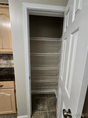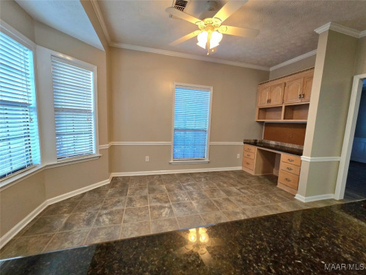 The kitchen and guest bathrooms feature granite countertops, while the primary bathroom is finished with cultured marble countertops. A formal dining room with a chair rail and shadow box half wall adds classic character and charm.