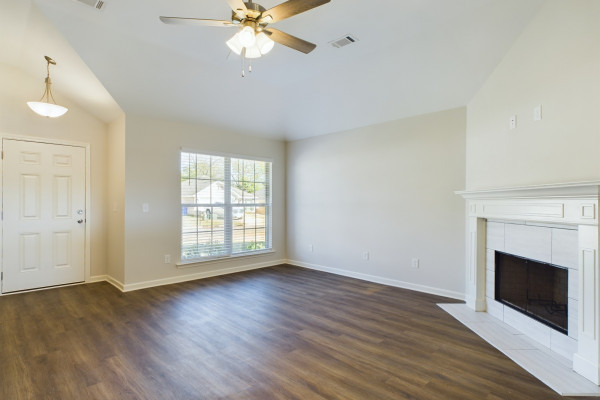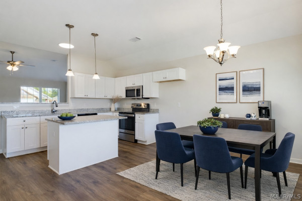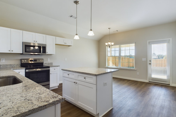 Welcome to the Lily floor plan! Falling in love starts when you walk up the driveway and notice the beautiful little details this home has to offer like the sconces that flank each side of the two-car garage, the covered front porch, and the window shutters that match the front door. Walking through the front door to the foyer your eye is first drawn to the wood burning fireplace that is masterfully set into tile and a wraparound mantel. Moving through this floor plan you will be struck by the modern and practical layout of the gorgeous eat in kitchen with wood cabinets. The kitchen with stainless steel appliances boasts several eating options, the raised peninsula that will be great for hosting and the island, which is illuminated by hanging pendants, is perfect for fast breakfasts on the go. The Lily is crafted with a separate utility room that offers great space for storage as well as abundant space for laundry. Continuing through this ideal floor plan there is the owner’s suite, which has carved out space for a soaking tub made for unwinding and destressing from the day and dual vanities to best pamper yourself in. With all the standard features it’s hard to believe that energy efficiency is also a standard. Heat pump hot water heater, spray foam insulation, and low E gas windows means this home will never run out of hot water and will stay toasty in the winter and cool in the summer all while keeping your energy bill low and predictable. With three bedrooms, two bathrooms, and a poured concrete patio, the Lily floor plan checks the box for style, affordability, and comfort.