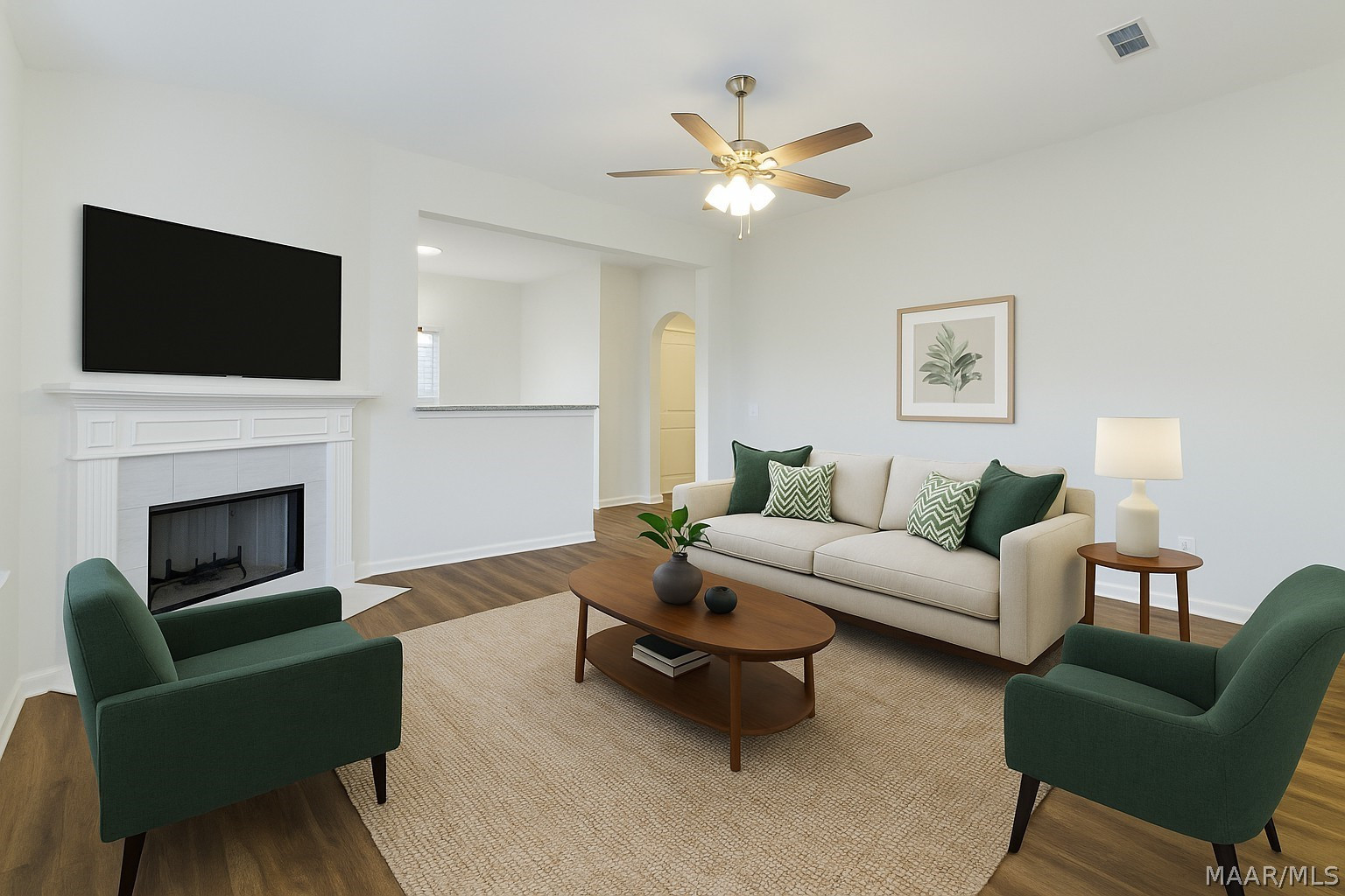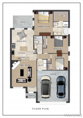 Welcome to the Lily floor plan! Falling in love starts when you walk up the driveway and notice the beautiful little details this home has to offer like the sconces that flank each side of the two-car garage, the covered front porch, and the window shutters that match the front door. Walking through the front door to the foyer your eye is first drawn to the wood burning fireplace that is masterfully set into tile and a wraparound mantel. Moving through this floor plan you will be struck by the modern and practical layout of the gorgeous eat in kitchen with wood cabinets. The kitchen with stainless steel appliances boasts several eating options, the raised peninsula that will be great for hosting and the island, which is illuminated by hanging pendants, is perfect for fast breakfasts on the go. The Lily is crafted with a separate utility room that offers great space for storage as well as abundant space for laundry. Continuing through this ideal floor plan there is the owner’s suite, which has carved out space for a soaking tub made for unwinding and destressing from the day and dual vanities to best pamper yourself in. With all the standard features it’s hard to believe that energy efficiency is also a standard. Heat pump hot water heater, spray foam insulation, and low E gas windows means this home will never run out of hot water and will stay toasty in the winter and cool in the summer all while keeping your energy bill low and predictable. With three bedrooms, two bathrooms, and a poured concrete patio, the Lily floor plan checks the box for style, affordability, and comfort.