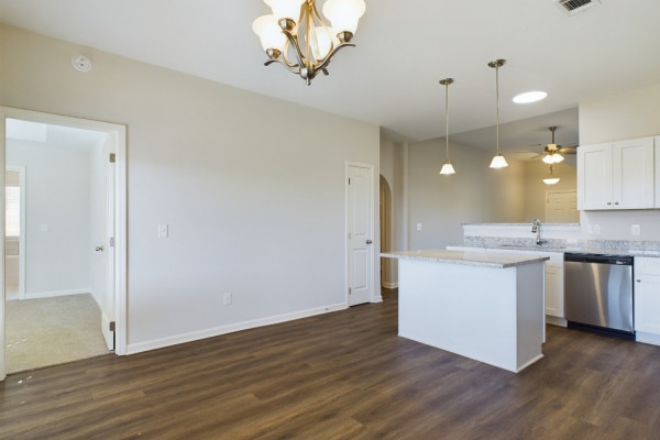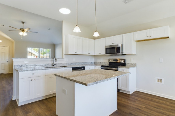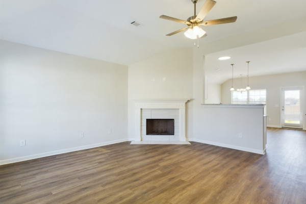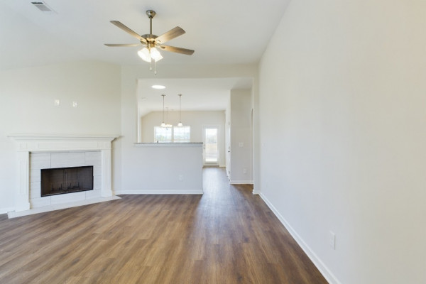 Welcome to the Lily floor plan! Falling in love starts when you walk up the driveway and notice the beautiful little details this home has to offer like the sconces that flank each side of the two-car garage, the covered front porch, and the window shutters that match the front door. Walking through the front door to the foyer your eye is first drawn to the wood burning fireplace that is masterfully set into tile and a wraparound mantel. Moving through this floor plan you will be struck by the modern and practical layout of the gorgeous eat in kitchen with wood cabinets. The kitchen with stainless steel appliances boasts several eating options, the raised peninsula that will be great for hosting and the island, which is illuminated by hanging pendants, is perfect for fast breakfasts on the go. The Lily is crafted with a separate utility room that offers great space for storage as well as abundant space for laundry. Continuing through this ideal floor plan there is the owner’s suite, which has carved out space for a soaking tub made for unwinding and destressing from the day and dual vanities to best pamper yourself in. With all the standard features it’s hard to believe that energy efficiency is also a standard. Heat pump hot water heater, spray foam insulation, and low E gas windows means this home will never run out of hot water and will stay toasty in the winter and cool in the summer all while keeping your energy bill low and predictable. With three bedrooms, two bathrooms, and a poured concrete patio, the Lily floor plan checks the box for style, affordability, and comfort.