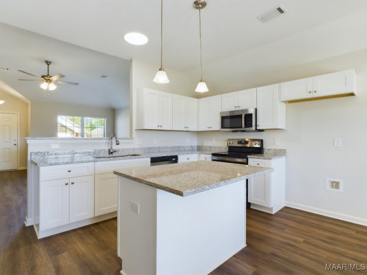 Welcome to the Lily floor plan! Falling in love starts when you walk up the driveway and notice the beautiful little details this home has to offer like the sconces that flank each side of the two-car garage, the covered front porch, and the window shutters that match the front door. Walking through the front door to the foyer your eye is first drawn to the wood burning fireplace that is masterfully set into tile and a wraparound mantel. Moving through this floor plan you will be struck by the modern and practical layout of the gorgeous eat in kitchen with wood cabinets. The kitchen with stainless steel appliances boasts several eating options, the raised peninsula that will be great for hosting and the island, which is illuminated by hanging pendants, is perfect for fast breakfasts on the go. The Lily is crafted with a separate utility room that offers great space for storage as well as abundant space for laundry. Continuing through this ideal floor plan there is the owner’s suite, which has carved out space for a soaking tub made for unwinding and destressing from the day and dual vanities to best pamper yourself in. With all the standard features it’s hard to believe that energy efficiency is also a standard. Heat pump hot water heater, spray foam insulation, and low E gas windows means this home will never run out of hot water and will stay toasty in the winter and cool in the summer all while keeping your energy bill low and predictable. With three bedrooms, two bathrooms, and a poured concrete patio, the Lily floor plan checks the box for style, affordability, and comfort.