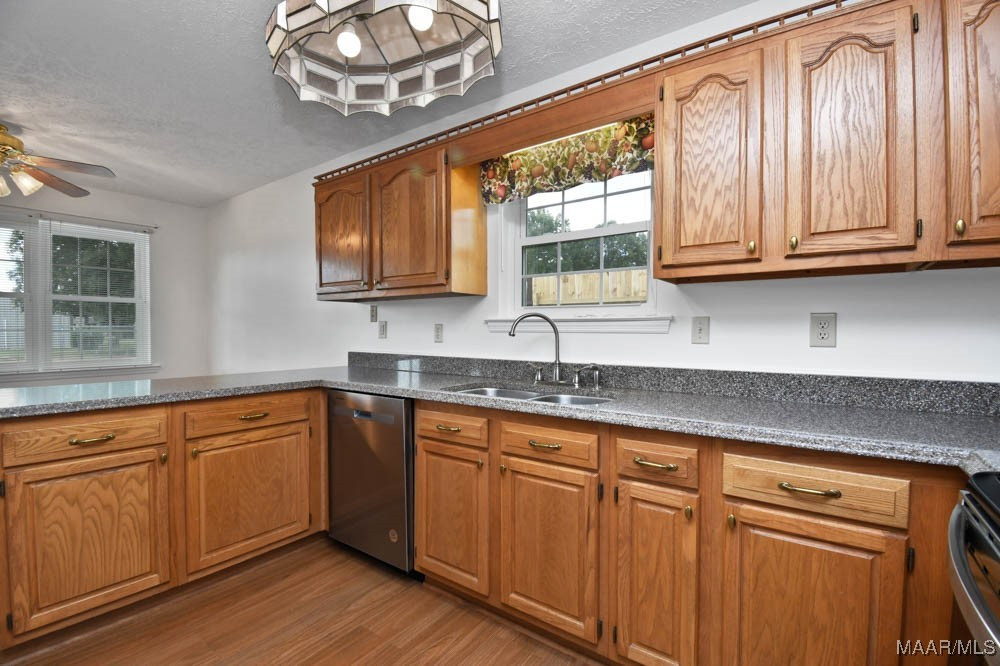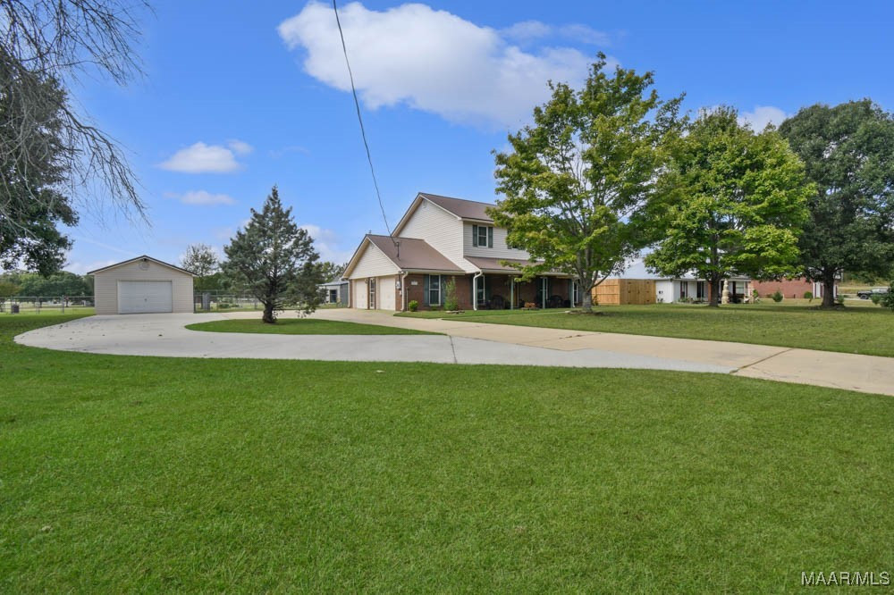 New vinyl plank flooring and paint throughout! 3-bedroom, 2.5-bath brick home nestled on a generous 0.5-acre lot in Jemison, AL—just 3 miles from Interstate 65 for easy commuting. A circular driveway leads to both an attached garage and a detached garage—perfect for a workshop, she-shed, or even a future apartment conversion. The fenced backyard offers privacy and space for outdoor enjoyment. Inside, you’ll find a large living room centered around a cozy gas fireplace and an additional flex room that could serve as a formal dining area, second living room, or home office. The eat-in kitchen provides ample cabinet space and room to gather. All three bedrooms are located upstairs, including a large master suite. The second full bath features a jetted walk-in tub for added comfort