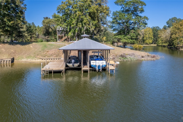 Boating enthusiasts will love the boathouse with two lifts (4,500 lb and 8,500 lb), extra storage, and a swimming and sunbathing deck. Under the house, there’s an expansive covered area ideal for entertaining or parking, plus additional storage for lawn equipment.