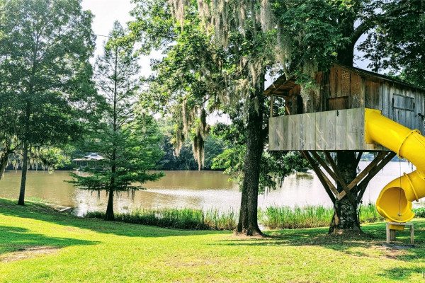 Outdoor living is elevated even further with a fire pit and a 100-square-foot tree house complete with a zip line. A 500 sq ft two story shop provides ample space for projects, tools, or storage.