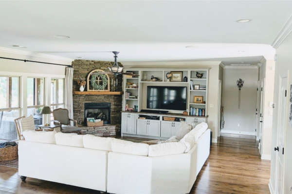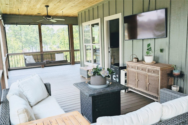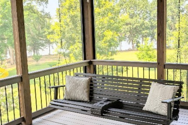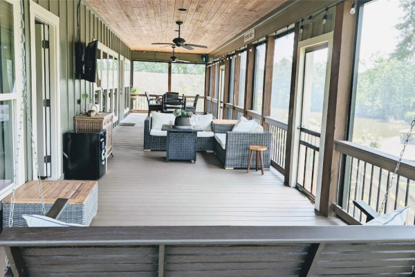 This 4-bedroom, 2.5-bath custom home offers 2,581 sq ft of living space and over 1,300 sq ft of covered porches, including 800 sq ft of fully screened-in areas—perfect for enjoying the outdoors in comfort year-round. The master bedroom offers a peaceful sanctuary, designed for comfort and relaxation with ample space and natural light. It features direct access to the porch, allowing you to effortlessly and enjoy the tranquil views. Upstairs, a Jack & Jill bath connects two bedrooms, ideal for families or guests. The home is finished with granite throughout, ¾-inch real hickory hardwood flooring, and tile in all bathrooms. The spacious kitchen includes a gas stovetop, and a built-in electric oven. Additional amenities include a gas fireplace, central vacuum system, full alarm and security camera setup, recessed lighting, spray foam, and two Rinnai on-demand gas hot water heaters. Plumbing is in place for a potential downstairs bathroom, offering flexibility for future expansion.
