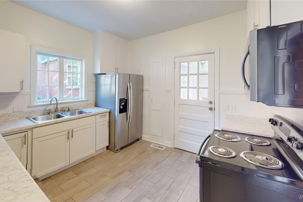 Welcome to 2045 Gorgas Street. Step into storybook charm with this beautifully updated cottage nestled in the heart of Montgomery. Featuring 3 bedrooms and one bath, this home blends cozy comfort with timeless character. From the covered front porch to the sun drenched living spaces, every corner exudes warmth and personality. The current owners have painted inside out outside. New stainless and black appliances have been installed including an electric range, refrigerator, microwave, and dishwasher. New kitchen cabinets and recessed lighting in the living room and dining room. The living room features a cozy fireplace for those cold winter nights. The soothing paint tones throughout give it an updated look without losing the charm of bygone years. The door going off the kitchen goes to a covered walk way leading to the workshop and laundry area. The living room has a gorgeous bay window, providing the space with alot of natural light. The dining room is bright and cheery leading conveniently into the kitchen. The bathroom was updated with a custom tiled walk in shower. Two of the bedrooms are spacious and the third bedroom which is a swing room, could be the third bedroom or a great multi purpose room. It features heart of pine paneling, a closet and door going out to the backyard. There is a fireplace in that room, but sellers have not used it and do not know if it is functional. The back yard is spacious with a patio area. All the service wire to the meter has been rewired. This home is convenient to downtown Montgomery, the shops and restaurants of Cloverdale, and Maxwell/Gunter AFB. Move in ready and a must see. Call your favorite REALTOR® for a private tour.