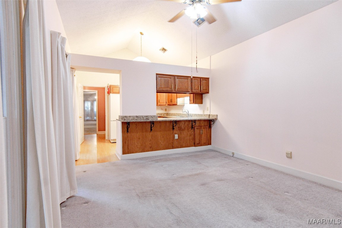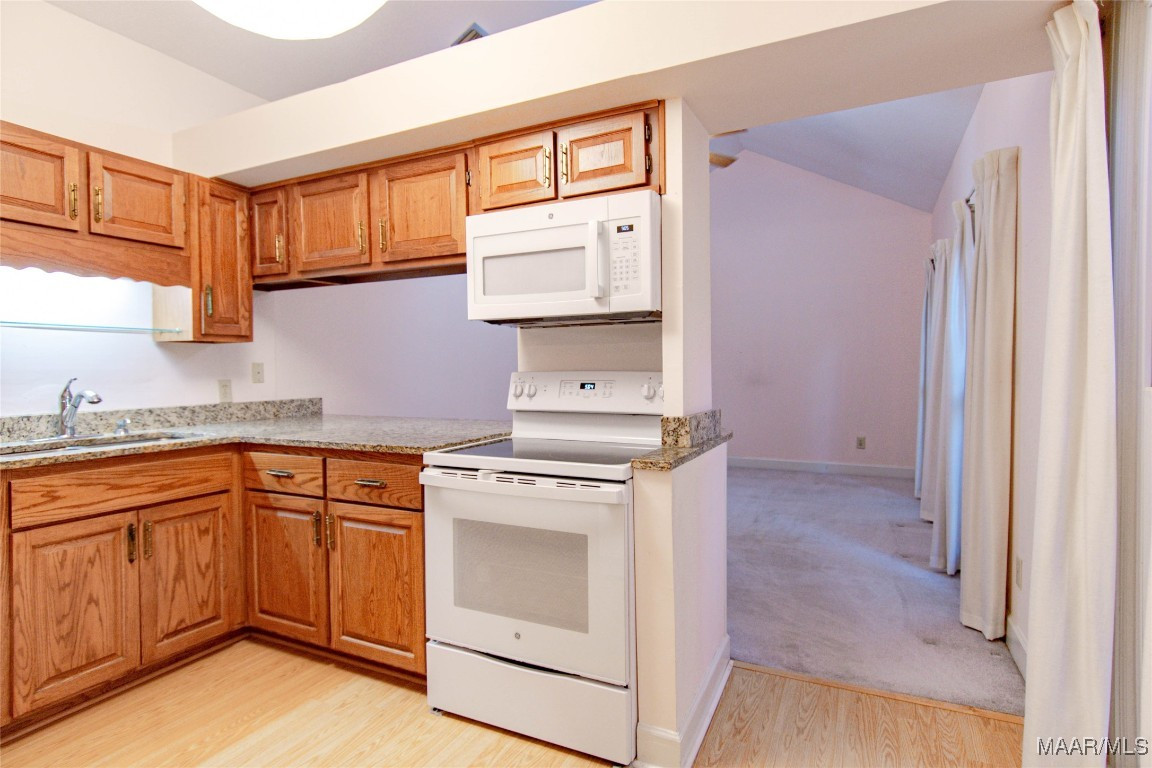 Welcome to this thoughtful one story floor plan in desirable Hazel Hedge. Massive LR/DR combo with a fireplace and built-in. Plenty of space and has a walk-in closet for storage. Kitchen features granite counter tops, adequate storage, and counter space. it overlooks a den with vaulted ceiling. Perfect split space for entertaining or 2 separate living areas. Two bedrooms with generous closet space. One has an ensuite bath and both baths are completely updated. Off the GR is a large patio with privacy. 2 car carport and 2 nice storage rooms. HOA covers front yard maintenance to include shrubs, pine straw, and grass mowing. Centrally located and quick access to I-85. Minutes to the Cloverdale entertainment districts and Zelda Road shopping area.