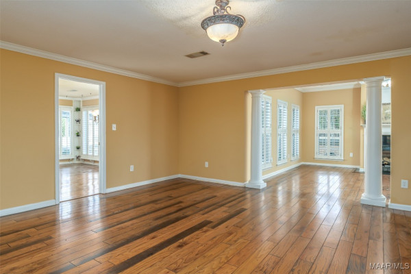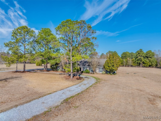 Peaceful Pike Road living on 6+ acres! Come experience the perfect blend of country serenity & privacy, along with the modern convenience of proximity to town, in this beautiful estate home. Sitting on over 6 fenced acres with 2 remote-controlled gated entrances, this property is a dream for animal lovers, gardeners, & those just wanting space to breathe. Inside, the home balances luxury & comfort with its wide-plank wood flooring, custom wood plantation shutters, ornate trim work, & 2 cozy fireplaces. The main level is designed for relaxing & entertaining your family & friends. There is a Formal Living & a Formal Dining alongside a spacious Den & a light-filled Sunroom. The Kitchen has all you could want with its breakfast bar, plenty of cabinets/counterspace, 2 ovens, a double sink, an instant-hot water dispenser & all appliances will remain. You’ll love the convenience of the main-floor Master Suite (with 2 walk-in closets) & the main-floor 2nd Bedroom (currently used as a Study). The Study features a lovely wall of built-in shelves & a large walk-in closet. The Laundry Room is right off the kitchen, complete with built-in cabinets & shelves for pantry items. A convenient Half Bath for guests is tucked away behind the staircase. Upstairs, you’ll find 2 more large Guest Bedrooms, a Hall Bath with a double vanity, & 3 large storage closets. In addition to the 2-car Garage (equipped with an EV charger), there is a lighted, columned walkway that leads to a separate, climate-controlled “Man-Cave”! This would make the ultimate spot for watching Saturday football games, or it could be used as a Home Gym, Art/Music Studio, Playroom, etc. Extra features you don’t want to miss include the Rinnai tankless water heater, intercom system, new HVAC downstairs, patio with pergola & built-in gas grill, & a full security system with cameras. *ELIGIBLE FOR ANNEXATION INTO THE HIGHLY SOUGHT AFTER PIKE ROAD SCHOOL DISTRICT!! Call me or your favorite Realtor today for a showing!