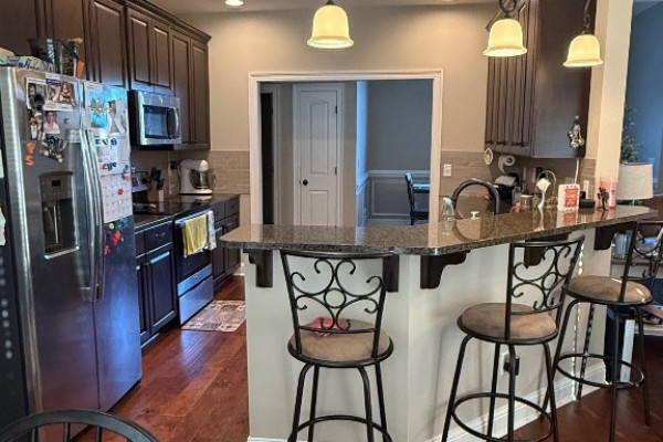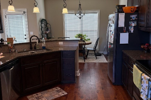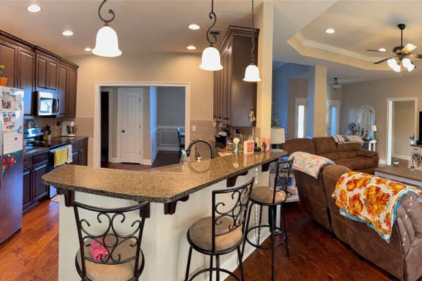 Welcome to this stunning 4-bedroom, 2-bath home, thoughtfully designed with a desirable mother-in-law plan, offering privacy and space for everyone. Beautiful wood flooring flows throughout the main living areas, complementing the elegant tile flooring and granite countertops found in both the kitchen and bathrooms.