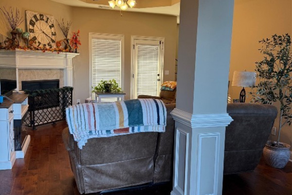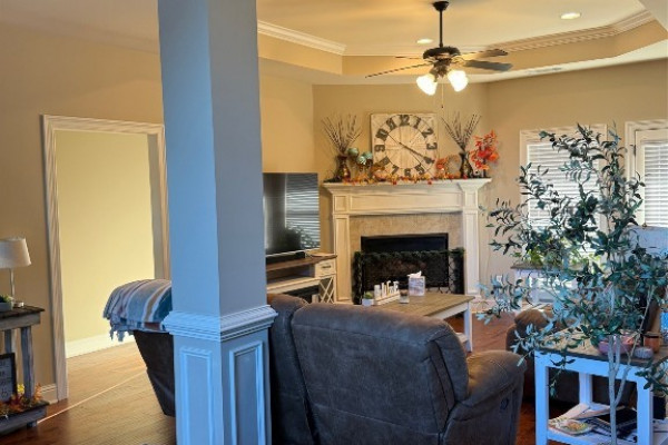 Entertaining is a delight in the generously sized dining room and the expansive great room, which features an elevated boxed ceiling and a cozy fireplace, perfect for gathering with loved ones. The large kitchen is a chef’s dream, boasting ample counter and cabinet space for all your culinary needs.