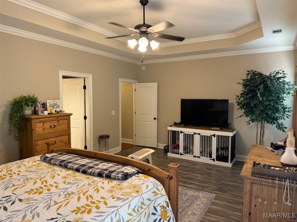 Retreat to the large main bedroom, also adorned with elevated boxed ceilings, creating an airy and luxurious feel. The main bath is a spacious sanctuary, complete with double sinks, a separate garden tub, and a magnificent custom-tiled walk-in shower. Bedroom 2 offers the convenience of a walk-in closet, while bedrooms 3 and 4 are well-proportioned with good closet space.
