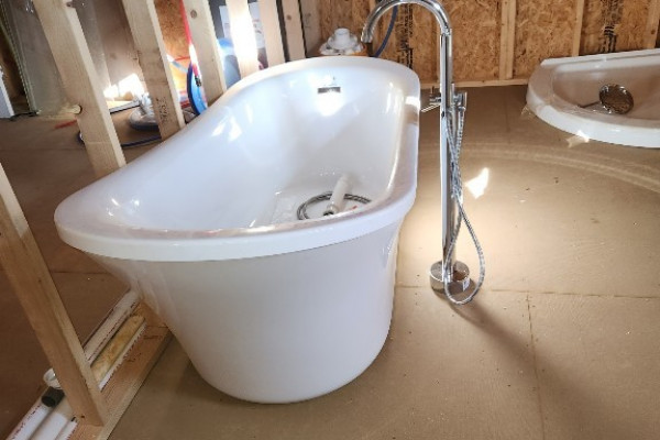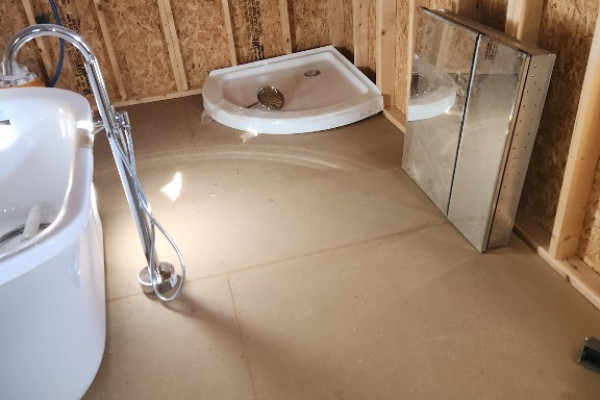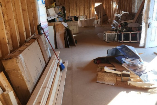 2023 16×60 building was being set up as a one bedroom home. Approximately 1/3 complete. Owner is leaving all the supplies to complete this project, counter tops, sinks, cabinets, etc. Soaker tub is installed, also has brand new side by side stainless steel refrigerator (not on property). Knotty pine boards to complete interior, they need to be planed. Owner is also leaving all types of goodies with the property, such as a 1943 Ford tractor. Per owner it runs-needs battery.