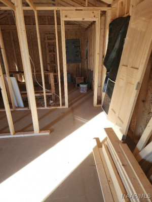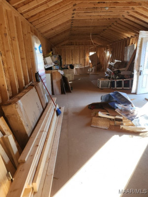 2023 16×60 building was being set up as a one bedroom home. Approximately 1/3 complete. Owner is leaving all the supplies to complete this project, counter tops, sinks, cabinets, etc. Soaker tub is installed, also has brand new side by side stainless steel refrigerator (not on property). Knotty pine boards to complete interior, they need to be planed. Owner is also leaving all types of goodies with the property, such as a 1943 Ford tractor. Per owner it runs-needs battery.