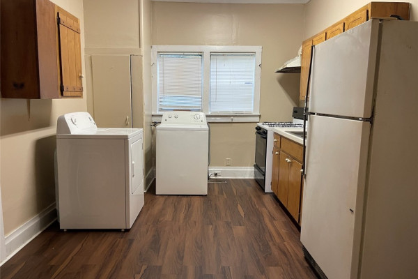 Boasting over 1,400 sq. ft. of freshly painted living space, the home features brand-new vinyl flooring throughout for a modern touch and easy maintenance. The kitchen is fully equipped with appliances, including a washer and dryer, making move-in simple and stress-free.