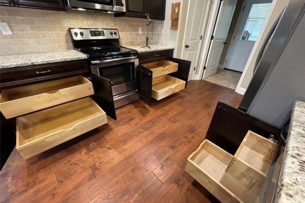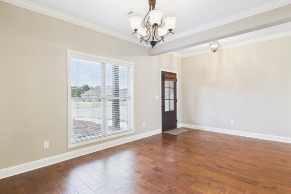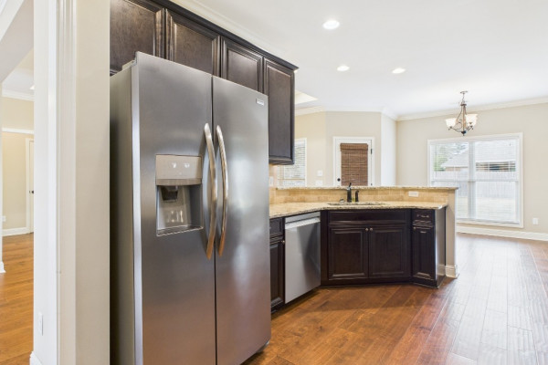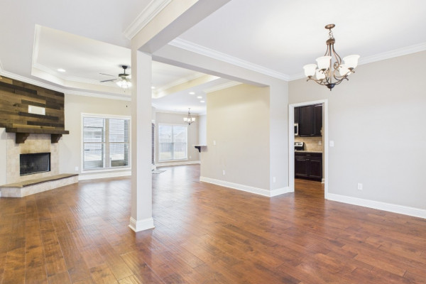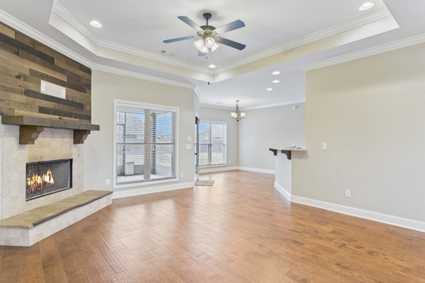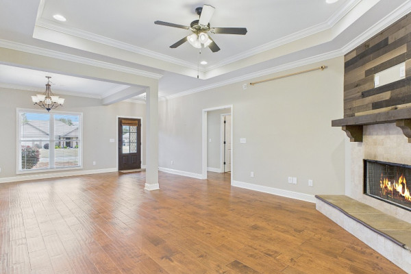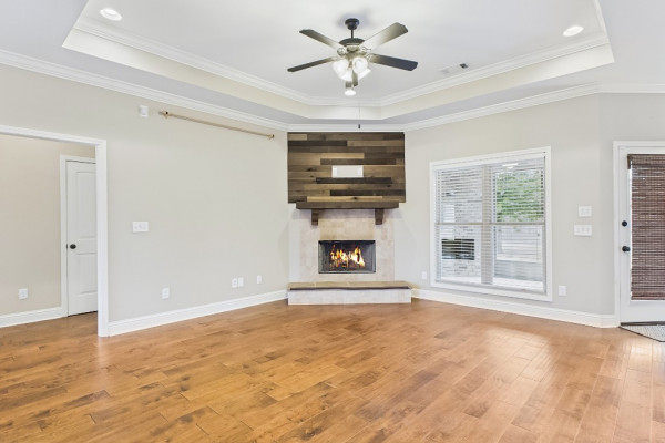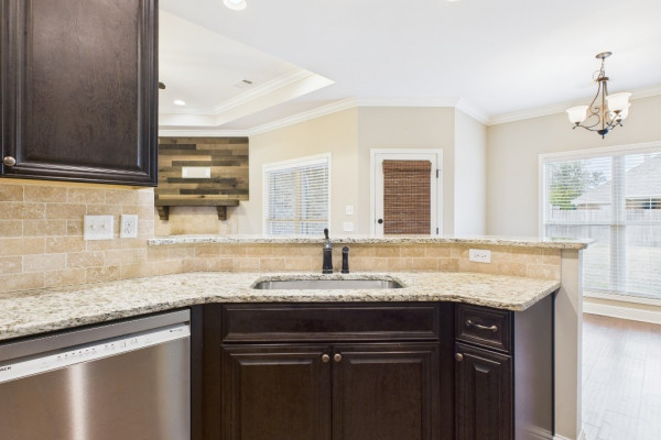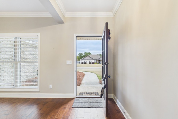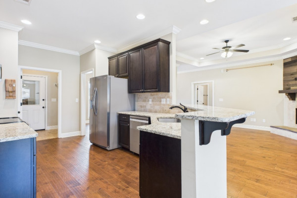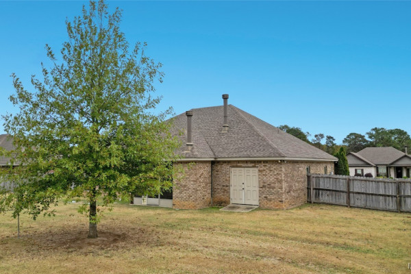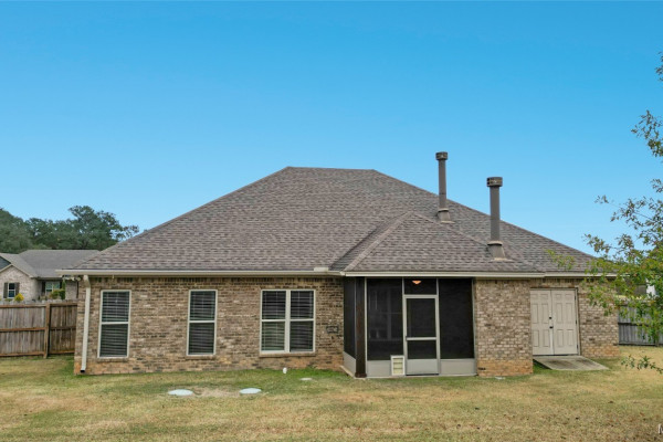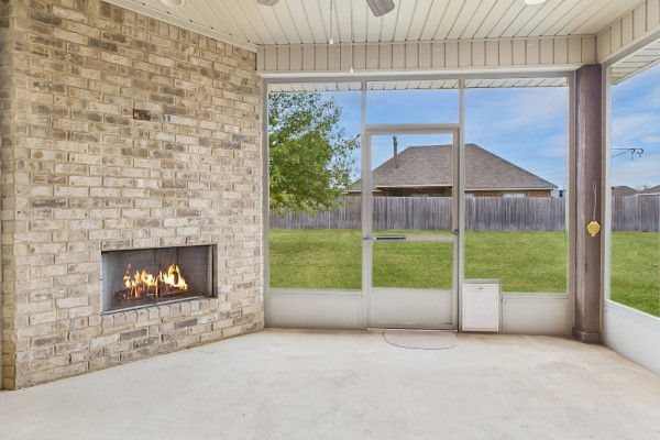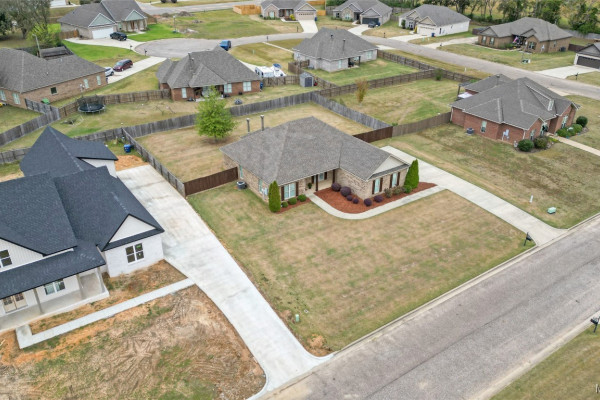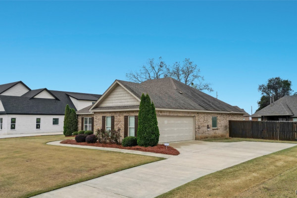 Welcome to Waterstone in Deatsville! This beautiful 3-bedroom, 2-bath brick home was built in 2017 and sits on a large, flat residential lot. Featuring an open-concept design, this home offers spacious living with beautiful wood floors and a cozy wood-burning fireplace in the living room. The kitchen includes granite countertops, stainless steel appliances, a pantry, and six convenient easy-access drawers added to three of the base cabinets. The main en suite features a double vanity with granite countertop, a garden tub, a separate tiled shower with glass enclosure, a private commode room, a linen closet, and two walk-in closets—both enhanced with added closet organizers. The seller has also added two easy-access drawers to the vanity base cabinet for extra storage and convenience. Out back, enjoy the covered and screened patio with a second wood-burning fireplace—perfect for relaxing or entertaining. The fully fenced backyard includes a large double gate, attached storage, and newly added gutters along the back of the home. A two-car garage completes this move-in-ready property in one of Deatsville’s most desirable neighborhoods.