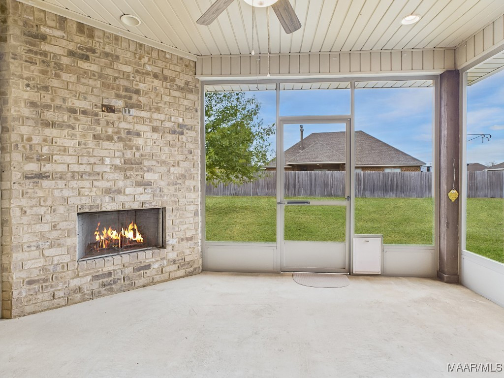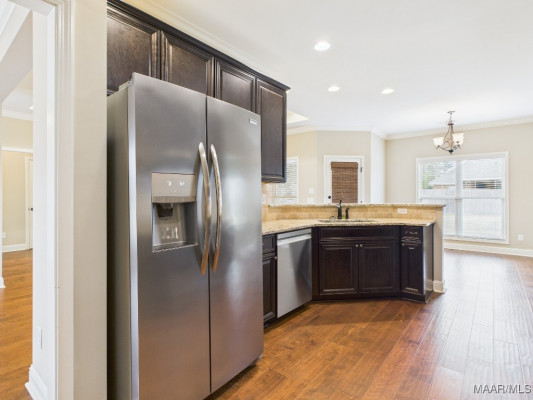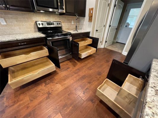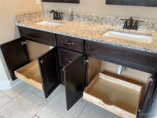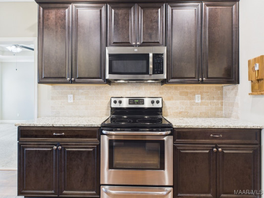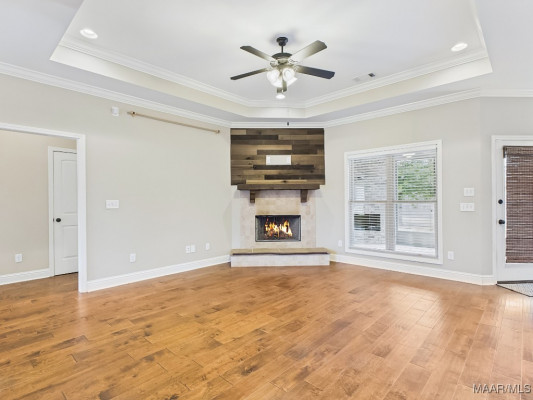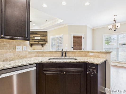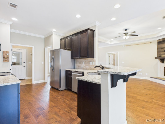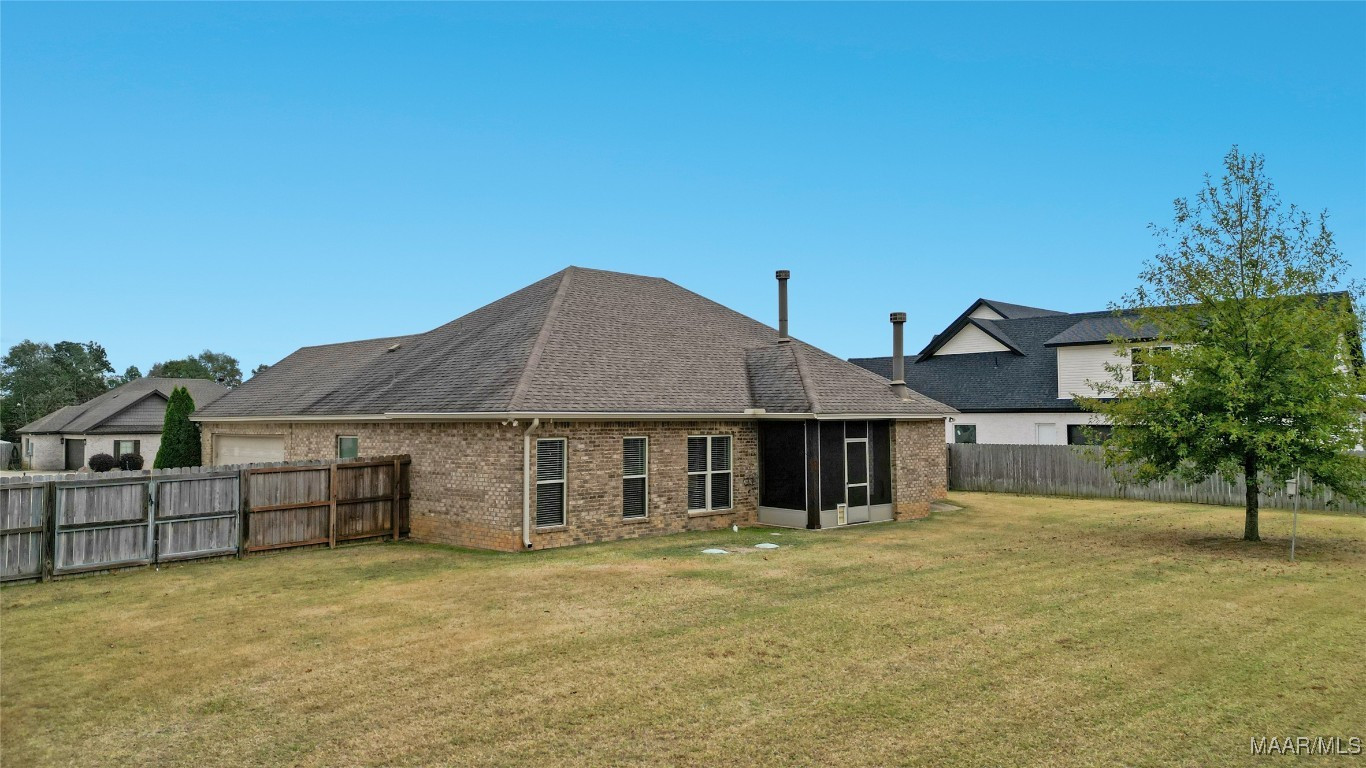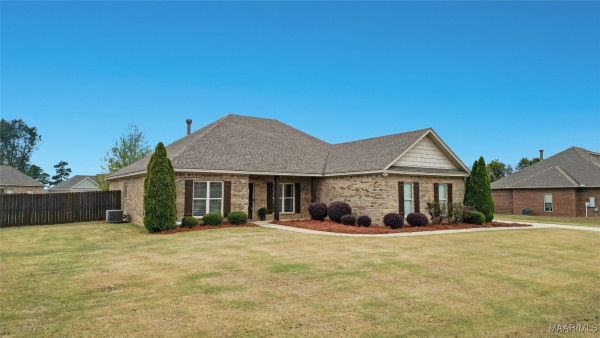 Welcome to Waterstone in Deatsville! This beautiful 3-bedroom, 2-bath brick home was built in 2017 and sits on a large, flat residential lot. Featuring an open-concept design, this home offers spacious living with beautiful wood floors and a cozy wood-burning fireplace in the living room. The kitchen includes granite countertops, stainless steel appliances, a pantry, and six convenient easy-access drawers added to three of the base cabinets. The main en suite features a double vanity with granite countertop, a garden tub, a separate tiled shower with glass enclosure, a private commode room, a linen closet, and two walk-in closets—both enhanced with added closet organizers. The seller has also added two easy-access drawers to the vanity base cabinet for extra storage and convenience. Out back, enjoy the covered and screened patio with a second wood-burning fireplace—perfect for relaxing or entertaining. The fully fenced backyard includes a large double gate, attached storage, and newly added gutters along the back of the home. A two-car garage completes this move-in-ready property in one of Deatsville’s most desirable neighborhoods.