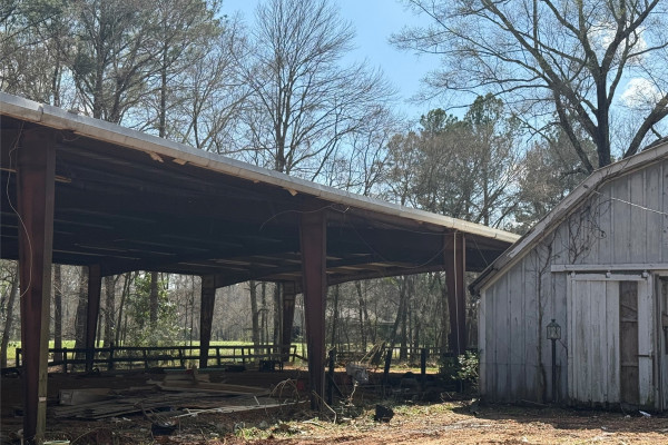 Absolutely beautiful estate lot that has not been available for purchase on the market in over 30 years. One of the last lots available in the Foxwood Neighborhood. Large horse barn with stables, storage and loft. The barn is 2,800 sq ft plus or minus with a metal gambrel roof. Also an open steel arena with steel roof that 8,000 sq ft plus or minus. There is a mix of very large oak trees and pines among all the other variety of trees. Small pond that could be expanded that is spring fed. One of a kind property. There is a row of stables that need repair.